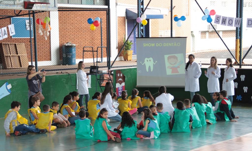 Entre as atividades realizadas com as crianças estava o Show do Dentão, com informações para prevenção à cárie dental