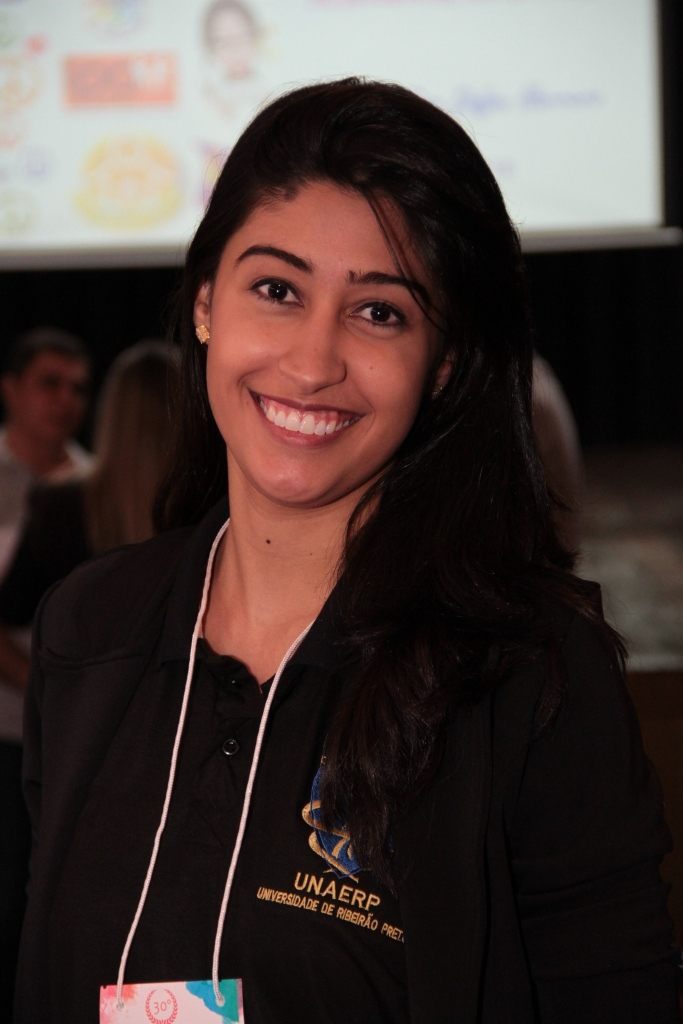 A presidente do Centro Acadêmico de Fisioterapia e integrante da comissão organizadora do evento, Bruna de Oliveira Cubas, durante o evento