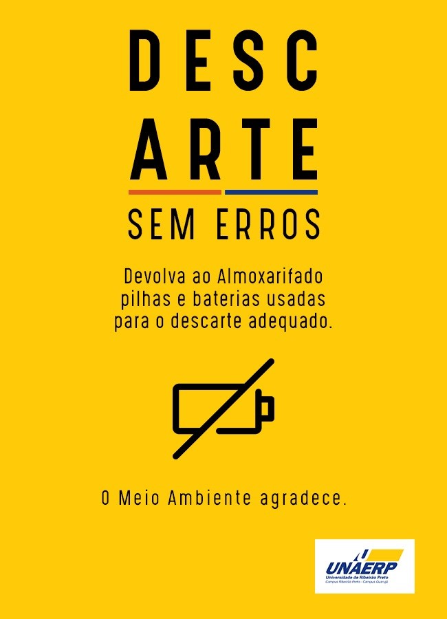 O Setor do Almoxarifado Central da Unaerp está promovendo o projeto "Descarte sem erro", visando contribuir para a preservação e sustentabilidade do Meio Ambiente. Participem!