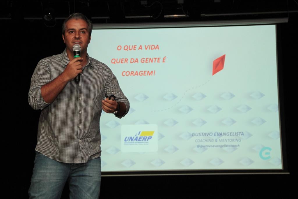 O coach de alta performance Gustavo Evangelista durante a palestra "O que a vida quer da gente é coragem!"