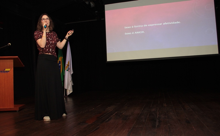 A psicóloga Camila Tronco, durante palestra que teve como tema "Sexualidade Feminina e Quebra de Tabus”