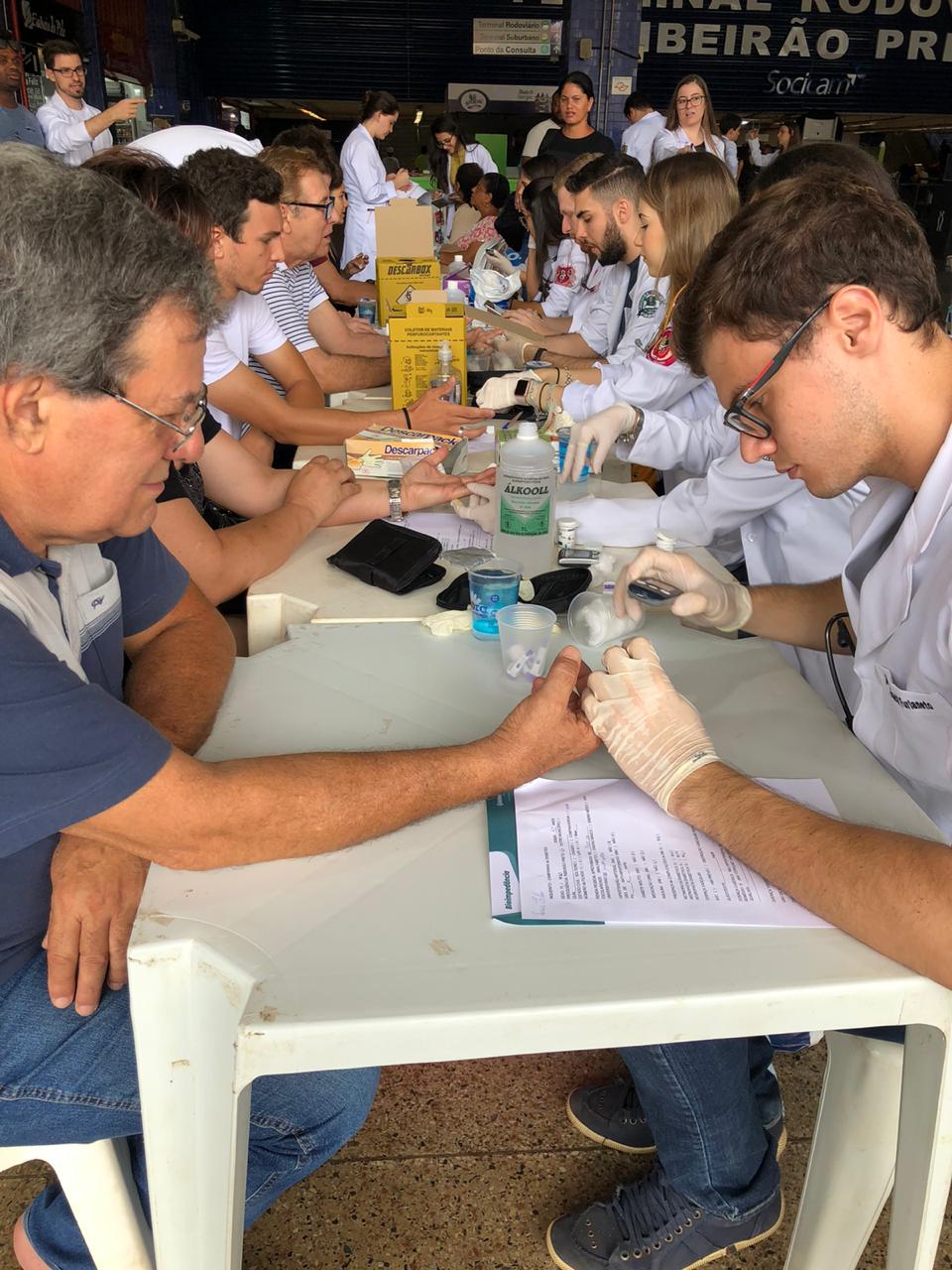A Liga de Endocrinologia do curso de Medicina da Unaerp promoveu uma Campanha do Dia Mundial do Diabetes no último sábado (09) no Terminal Rodoviário de Ribeirão Preto. O dia mundial do diabetes é comemorado em 14 de novembro. Ao todo, a professora Maria Lúcia D'Arbo Alves, docente responsável pelo evento, e os alunos, atenderam mais de 300 pessoas, entre homens e mulheres de todas as faixas etárias.