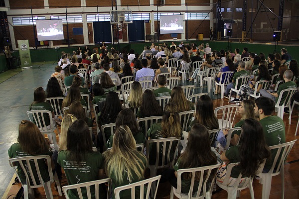 Na última terça-feira, 4 de fevereiro, aconteceu a 7ª edição da Cerimônia de Recepção ao Calouro de Medicina da Unaerp, na quadra poliesportiva do campus. Tradicionalmente, todo começo de semestre, o Centro Acadêmico Dutra de Oliveira (CADO), realiza o evento com o intuito de promover uma maior integração entre os alunos ingressantes e seus familiares, coordenação e reitoria da Universidade. “Esse evento é realizado para marcar essa passagem, a entrada do aluno na universidade, sendo uma cerimônia simbólica da iniciação dele no meio acadêmico”, afirma André Leal, presidente do Centro Acadêmico.