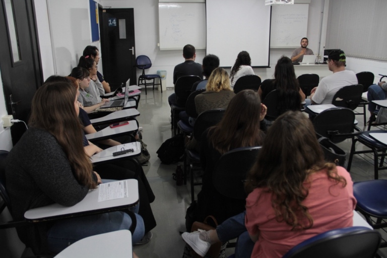 O analista de treinamento da Nube, Everton Machado Santos, ministrou palestras para os alunos interessados em conquistar uma vaga de estágio
