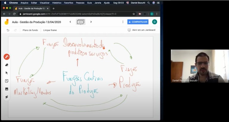 Daniel Fernando Bozutti usando o recurso Jamboard durante a aula