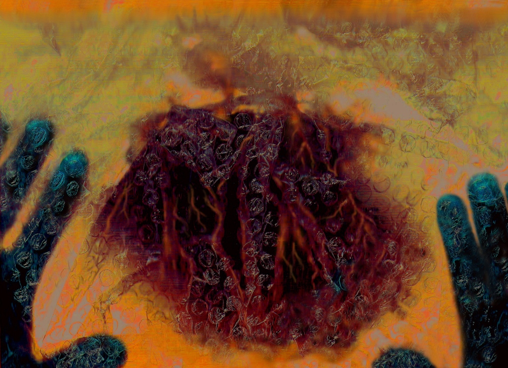 “Meu sangue, teu sangue”, fotografia cameraless produzida pelo artista plástico e professor da Unaerp, Dante Velloni