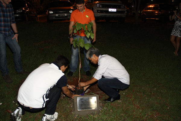 O Ipê foi plantado no campus da Universidade, pelo pai do ex-aluno Fausto, um dos homenageados da noite