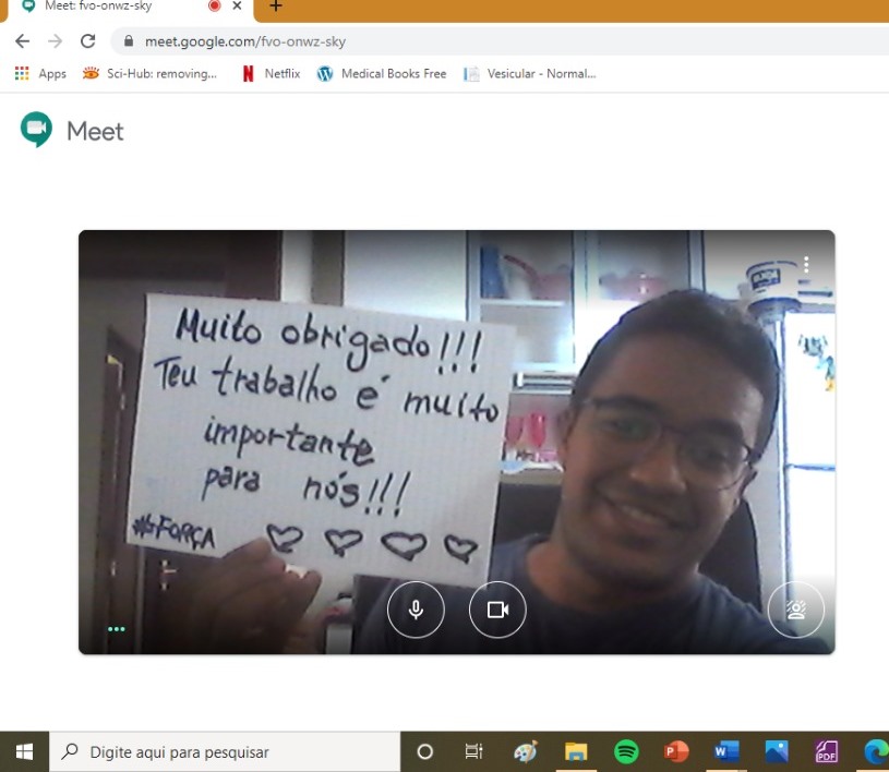 Abrir as câmeras e mostrar cartazes com mensagens de agradecimento ao trabalho dos professores durante a pandemia. Essa foi a ideia dos alunos da 5ª etapa do curso de Direito da Unaerp, como uma forma de dizer “muito obrigado” à dedicação desses profissionais no ensino virtual. “O principal objetivo foi demonstrar carinho, dizer que ainda que estejamos todos diante de uma tela, estamos juntos e que não importa o momento que cada um esteja vivendo, podemos todos contar uns com os outros”, explica a estudante Maria Victória Pieruchi Mazer.