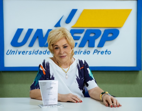 A reitora Elmara Bonini com o prêmio Top Of Mind recebido pelo 18º ano consecutivo