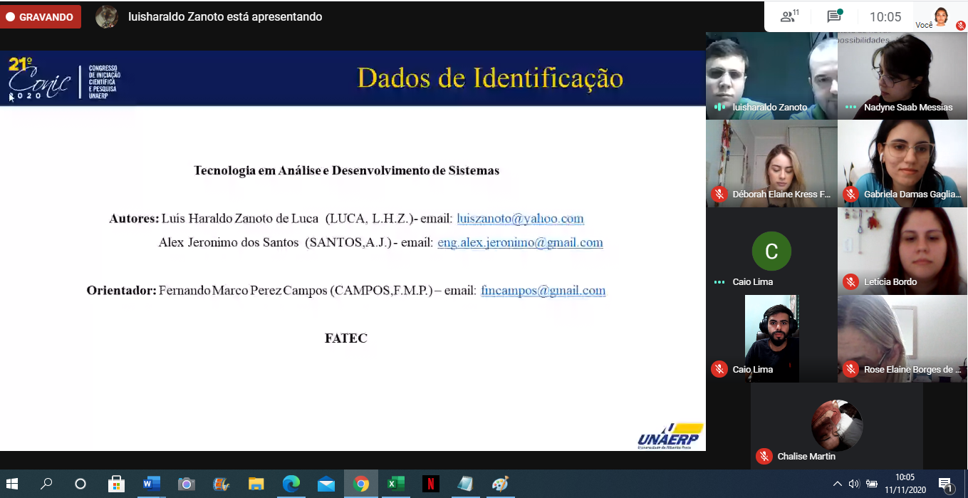 Logo após o encerramento da cerimônia de abertura do 21º Conic- Congresso de Iniciação Científica e Pesquisa, na manhã desta quarta-feira, 11, tiveram início as exposições e avaliações dos painéis de pesquisa, por meio da plataforma Google Meet. O Congresso, que este ano tem como tema “A ciência salva e equilibra o planeta”, acontece durante todo o dia e apresenta 588 pesquisas de estudantes de graduação, mestrandos e doutorandos de universidades públicas e particulares de Ribeirão Preto e região e de diversos estados brasileiros. “O tema desta edição vem ao encontro do processo de pandemia que ainda estamos passando, e mostra a importância da ciência frente ao cenário mundial”, explica a professora Luciana Rezende Alves de Oliveira, coordenadora do comitê científico do Conic.