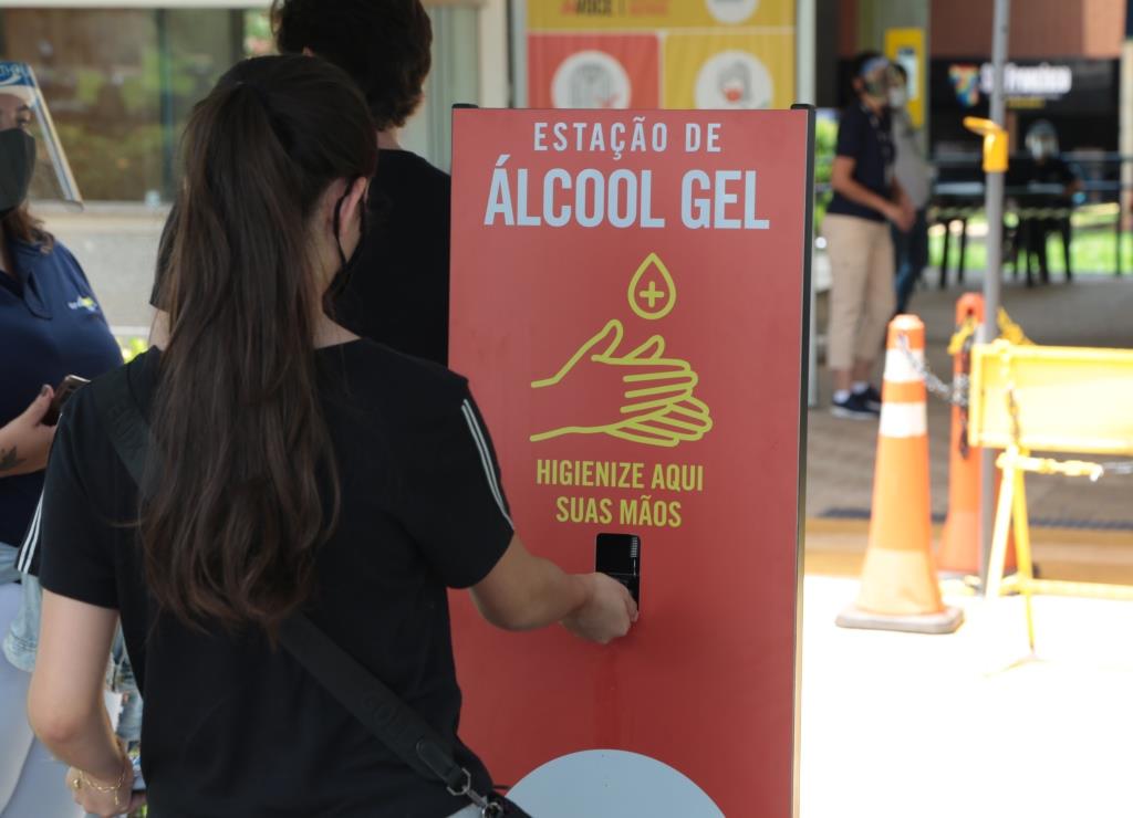 Está sendo disponibilizado álcool em gel 70%, na entrada, no prédio e nos blocos de aplicação do exame