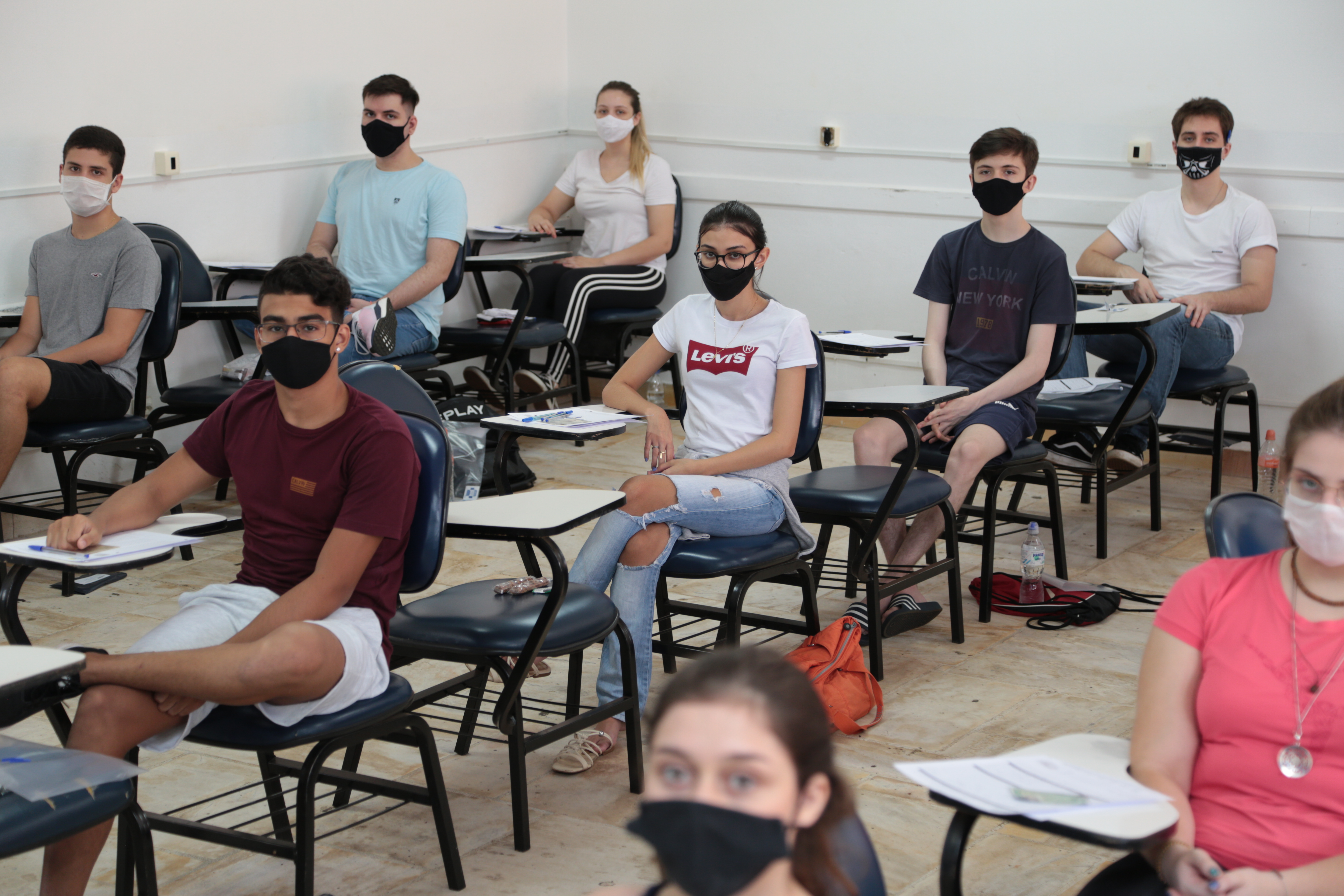 Diante da realidade atual, a Instituição está tomando todos os cuidados necessários. Seguindo as recomendações dos órgãos de saúde, é obrigatório o uso de máscara de proteção facial com cobertura total de nariz e boca e respeitar o distanciamento social de 1,5m. Além disso, na entrada do campus, é necessário medir a temperatura corporal, que deve estar abaixo de 37,6°C. Também está sendo disponibilizado álcool em gel 70% no prédio e nos blocos de aplicação do exame.