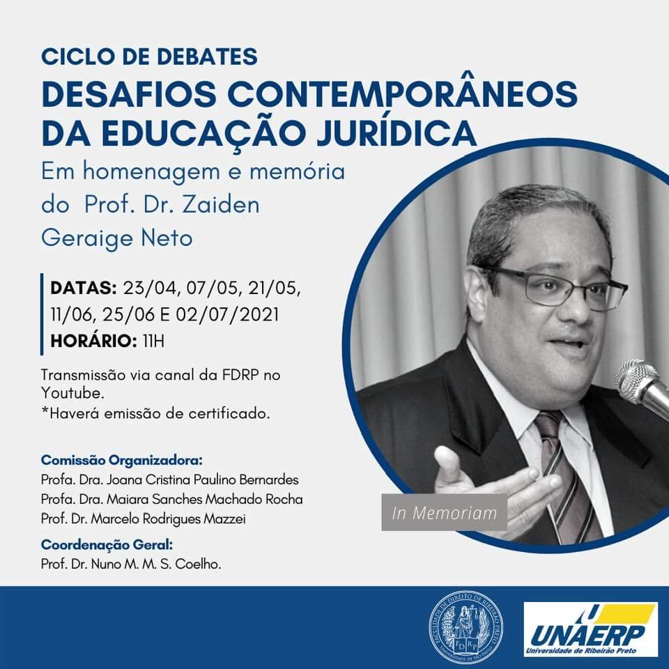 O curso de Direito da Unaerp é um dos organizadores do ciclo de debates “Desafios Contemporâneos da Educação Jurídica”, em homenagem e memória do professor Zaiden Geraige Neto.