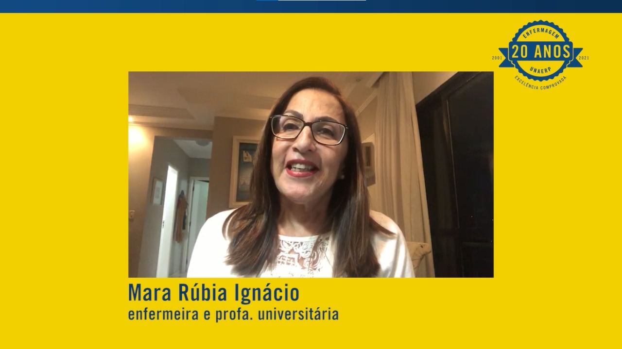 Mara Rubia, professora e uma das fundadoras do curso de Enfermagem da Unaerp. Clique na imagem para assistir o vídeo: