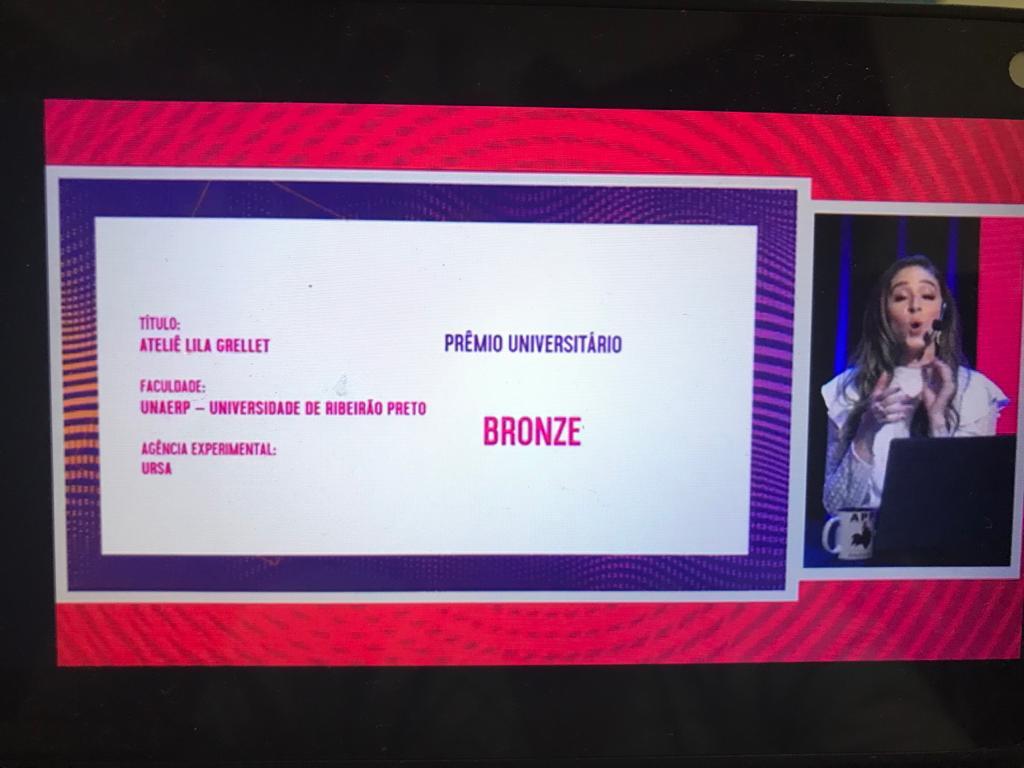 Nesta mesma categoria, o bronze ficou com a Ursa, com o projeto Ateliê Lila Grellet, que mostrou a realidade dos profissionais liberais, afetados pela pandemia. "Mesmo que o reconhecimento nesta premiação tenha sido incrível, posso dizer, em nome de toda a agência, que realizar esse trabalho, realmente não teve preço", afirma a aluna Mariana Vasconcelos.