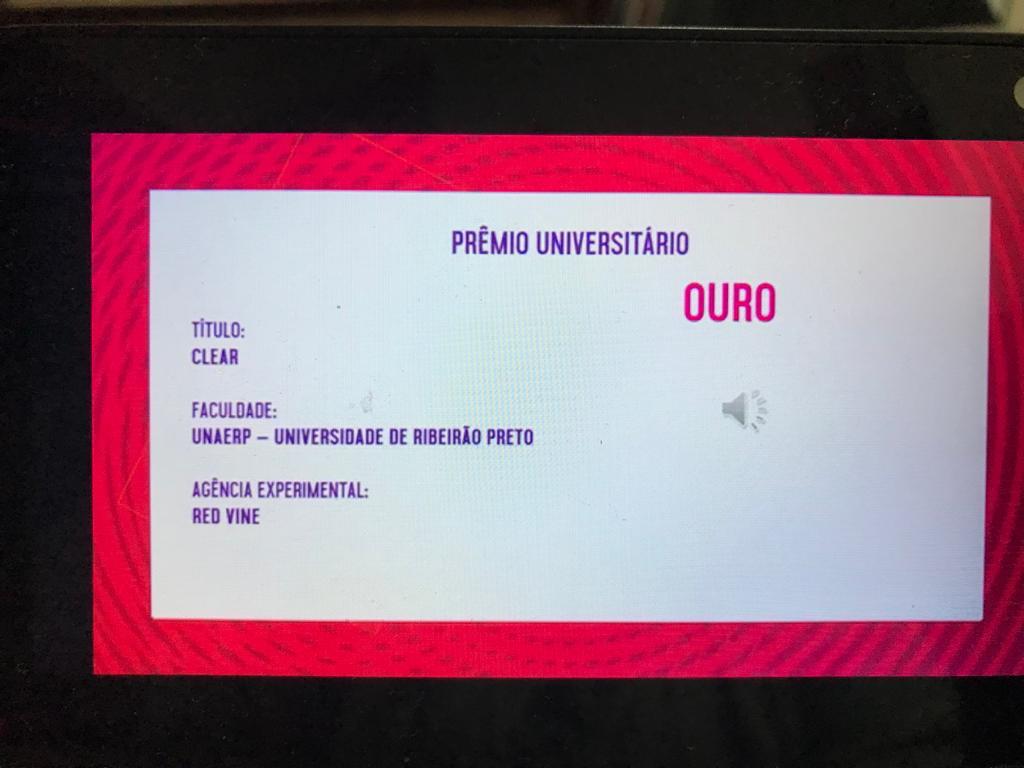 Com o trabalho Clear, um spot criativo sobre um fone de ouvido que isola o som externo, a agência Red Vine, foi ouro na categoria de Áudio. “Estamos muitos felizes com esse prêmio, principalmente porque esse é nosso primeiro semestre juntos, como agência. É uma coisa que engradece e deixa a gente muito feliz”, comemora o aluno Sandro Souza.