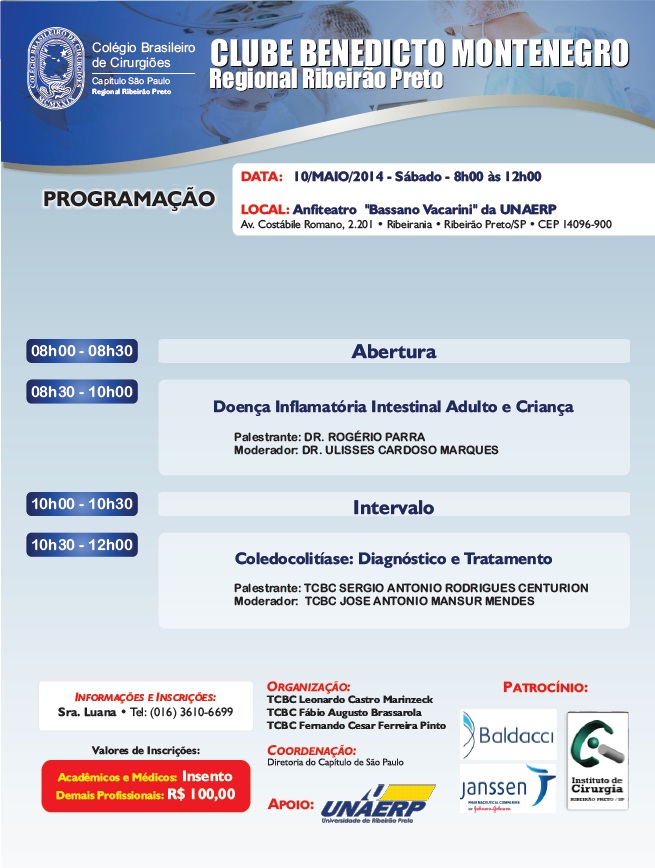 O evento, que pretende promover atualização médica de qualidade levando em conta as prioridades regionais, contará com duas palestras: "Doença Inflamatória Intestinal Adulto e Criança" e “Coledocolitíase: Diagnóstico e Tratamento”.