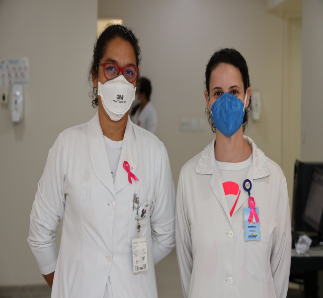 Professoras Lilian Sheila Carmo (esquerda) e Gabriela Pegoraro (direita), responsáveis pela coordenação do Mutirão Outubro Rosa