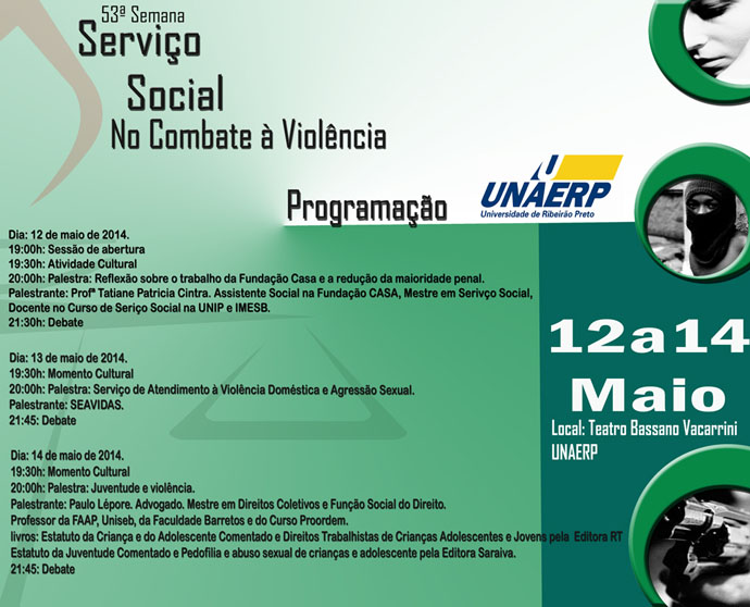 A 53ª Semana de Serviço Social acontece entre os dias 12 e 14 de maio, na Unaerp.