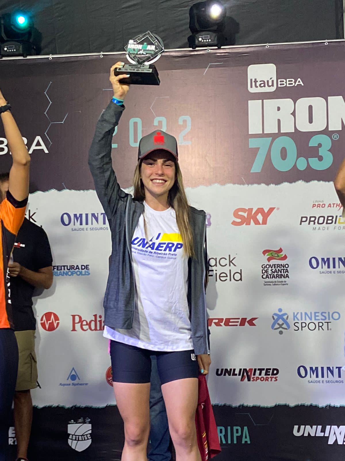 A aluna do curso Medicina da Unaerp, Marina Buonarotti, conquistou a segunda colocação, na categoria feminino 18 a 24 anos, na competição Ironman 70.3, que aconteceu no dia 24 de abril, na cidade de Florianópolis – SC. Na colocação geral feminina ficou em décimo quarto lugar.