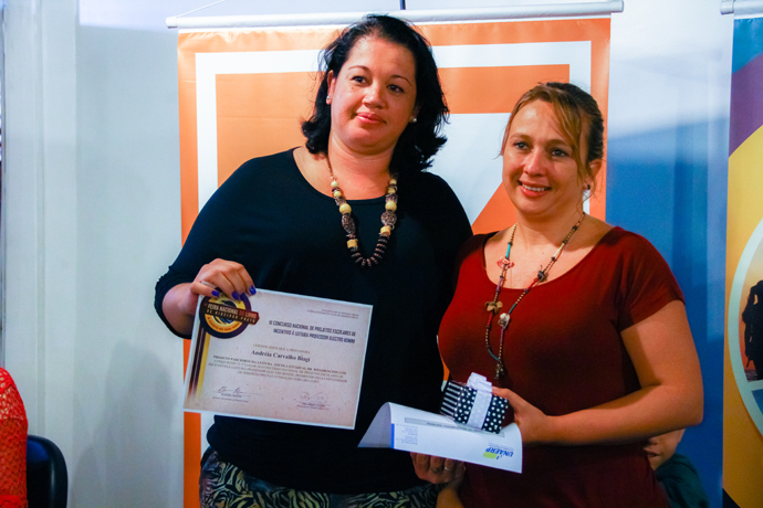 Professora Andréia Carvalho Biagi, vencedora do 3º lugar com Lara Bonini