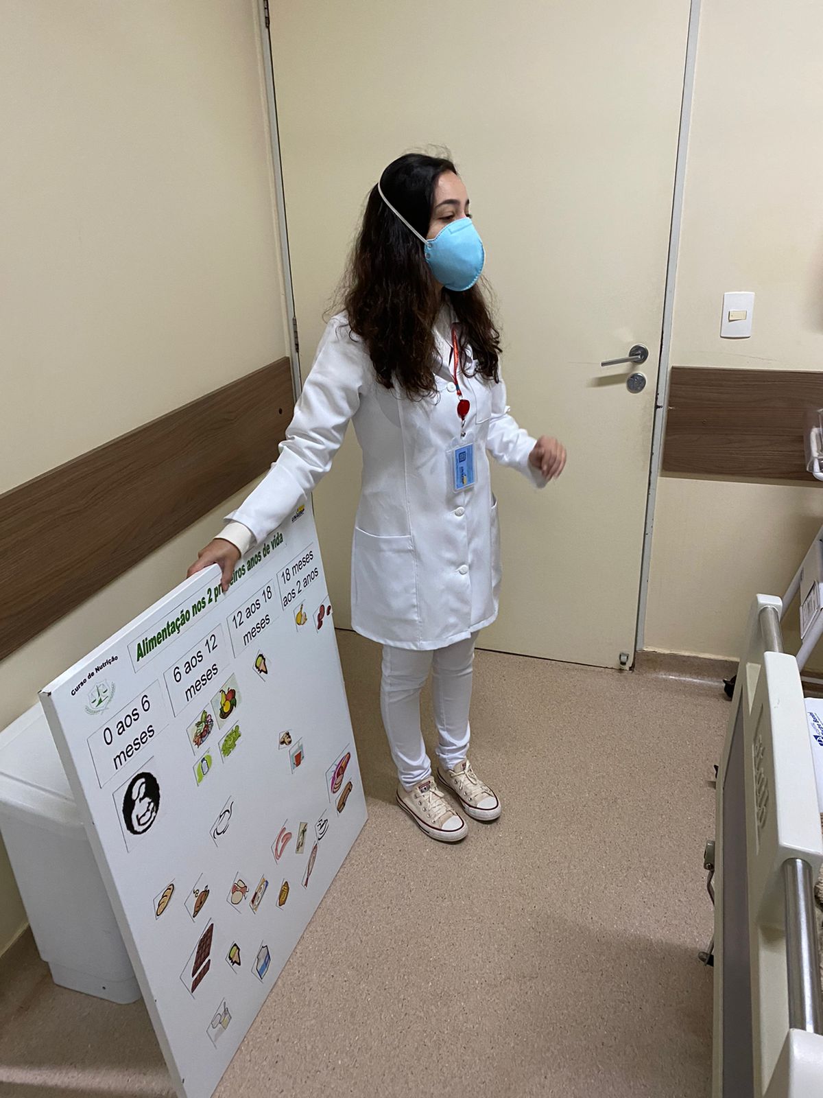 A nutricionista Renata Dessordi, que supervisiona o trabalho realizado pelos alunos na Maternidade, conta que alunos da última etapa do curso conversaram com gestantes e puérperas sobre a alimentação de bebês até dois anos de idade, além de mitos e verdades sobre aleitamento e como fazer a ordenha e conservação do leite.