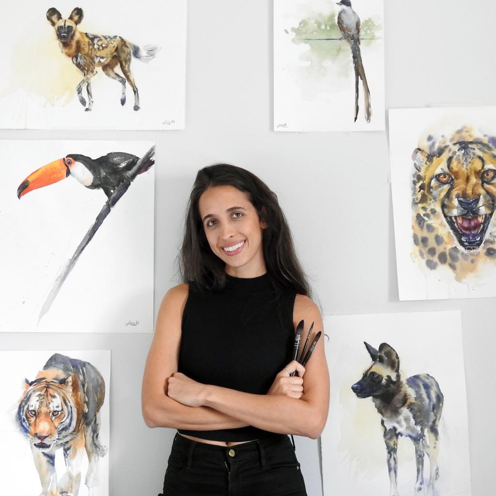 Aluna do curso de administração expôs aquarelas inspiradas na vida animal.