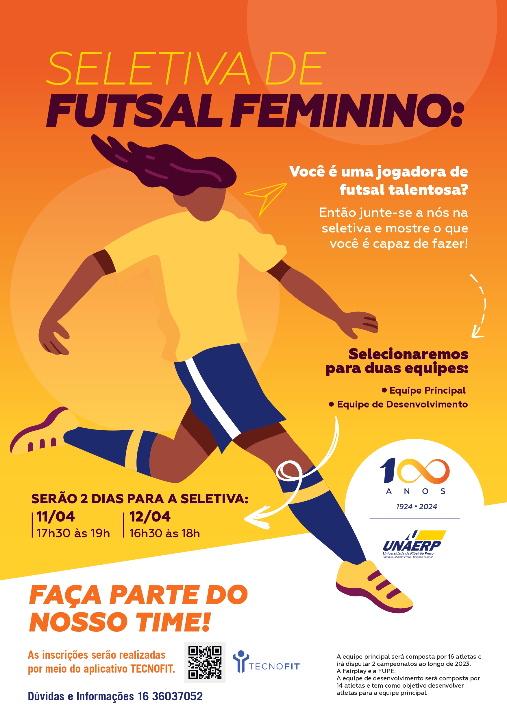O Núcleo de Esportes, Cultura, e Bem-Estar abre vagas para a Seletiva de Futsal Feminino da Unaerp. Serão montadas duas equipes, a principal, focado nos campeonatos Fairplay e FUPE, e a de desenvolvimento, com o objetivo de desenvolver atletas para a equipe principal. Os treinos acontecem duas vezes por semana para ambas equipes, as terças e quintas-feiras, das 18h às 19h, para a principal, e as segundas e quartas-feiras, das 17h às 18h, para a de desenvolvimento.
