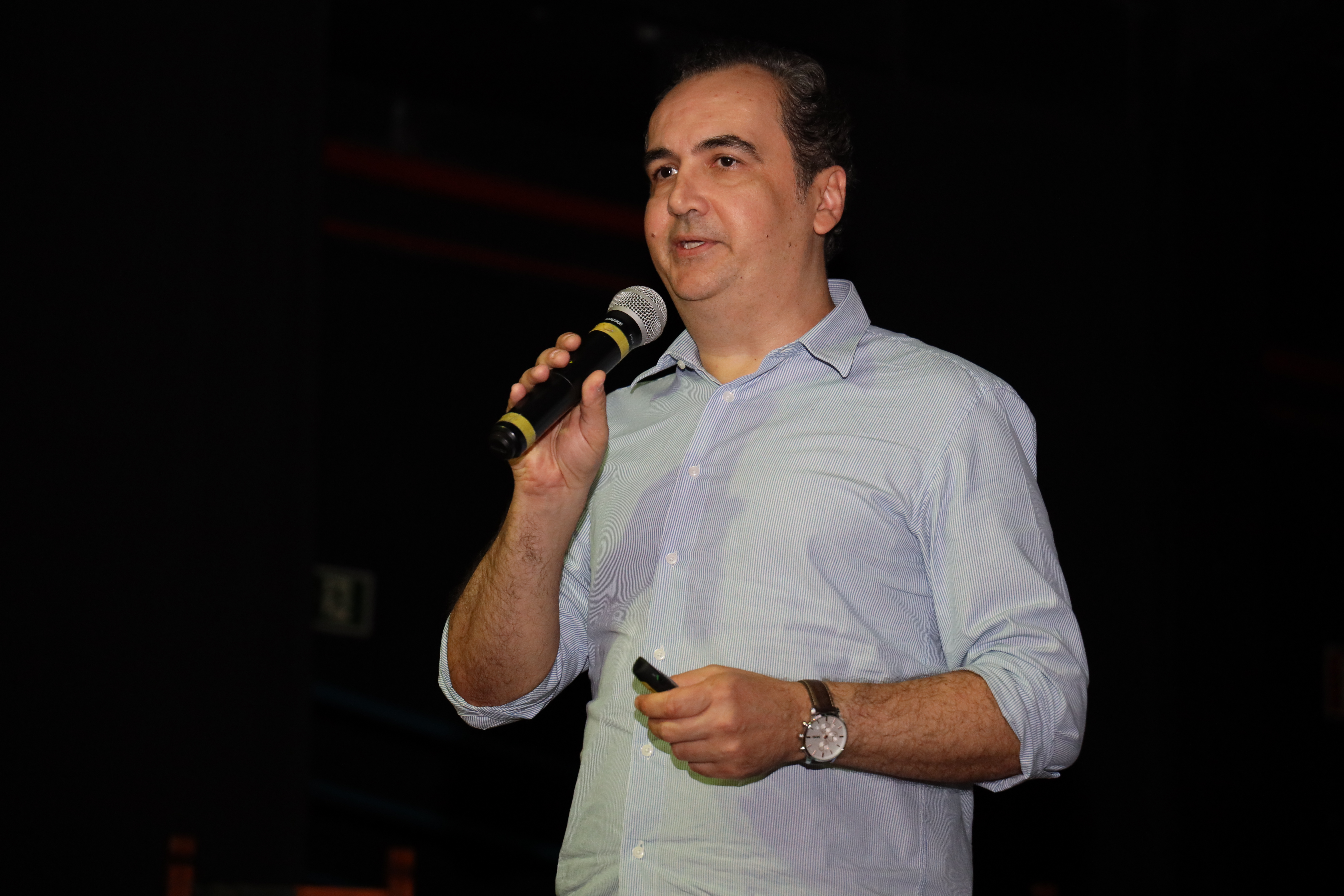 O professor e pesquisador da Unaerp, André Pitondo da Silva, realizou uma discussão sobre o tema do espetáculo
