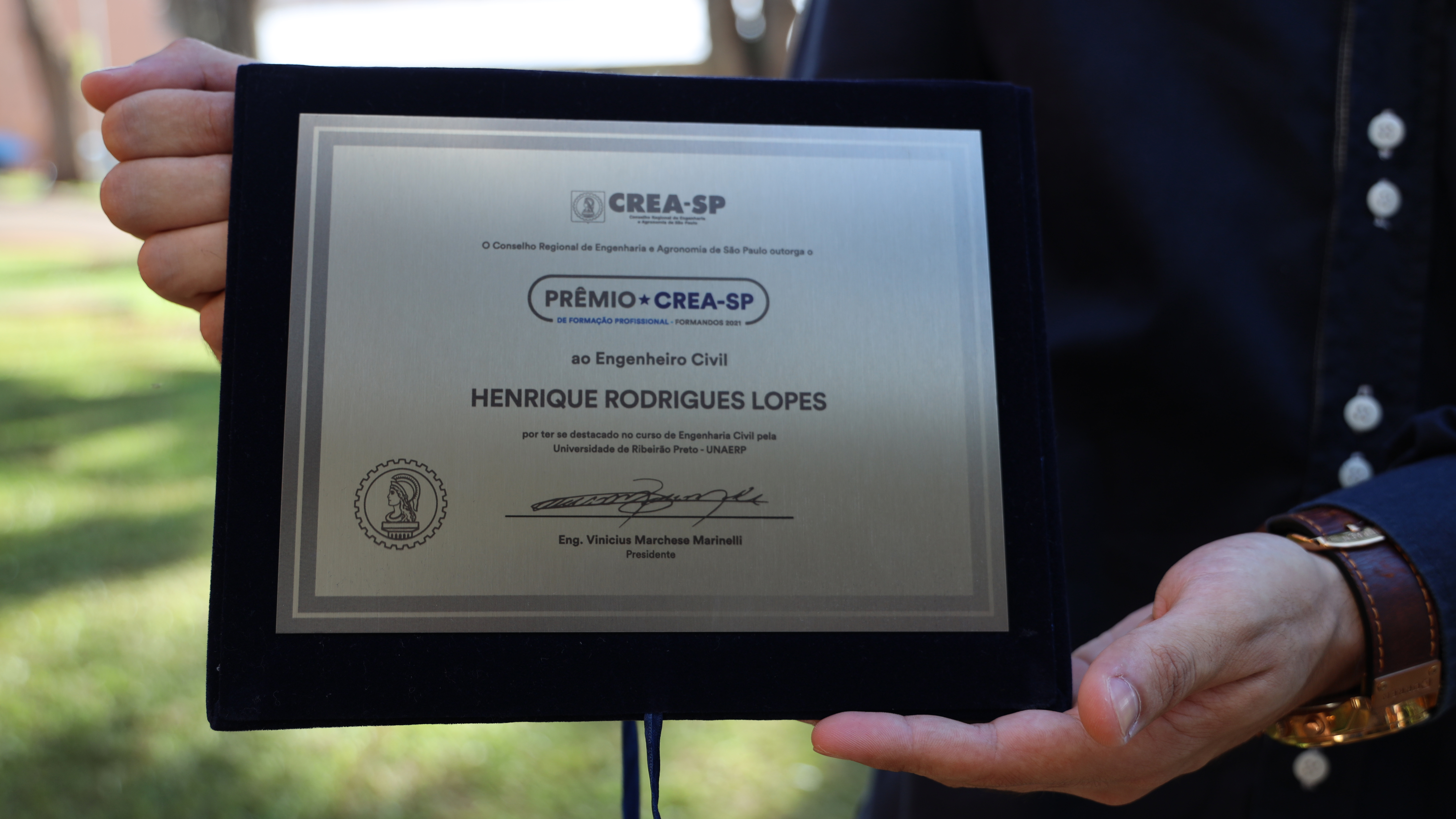 O alumni do curso de Engenharia Civil da Unaerp, Henrique Rodrigues Lopes, foi premiado no 25º Prêmio Crea-SP de Formação Profissional, concedido pelo Conselho Regional de Engenharia e Agronomia do estado de São Paulo. O Prêmio reconhece os alunos de Engenharia, Agronomia e Geociências que mais se destacaram em suas instituições de ensino durante os cinco anos de graduação. Foram 260 homenageados entre os formandos de 2021 no evento que aconteceu no dia 17 de janeiro, na cidade de São Paulo.