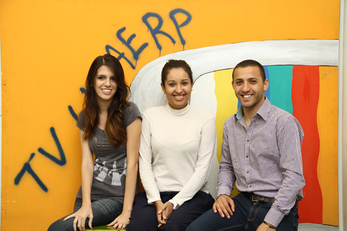 Time 2 do Projeto Brasil Além na TV Unaerp: Giovana Arduíno (Ribeirão Preto), Thais Sannas (Rio de Janeiro) e Milen Nikolov (Bulgária)