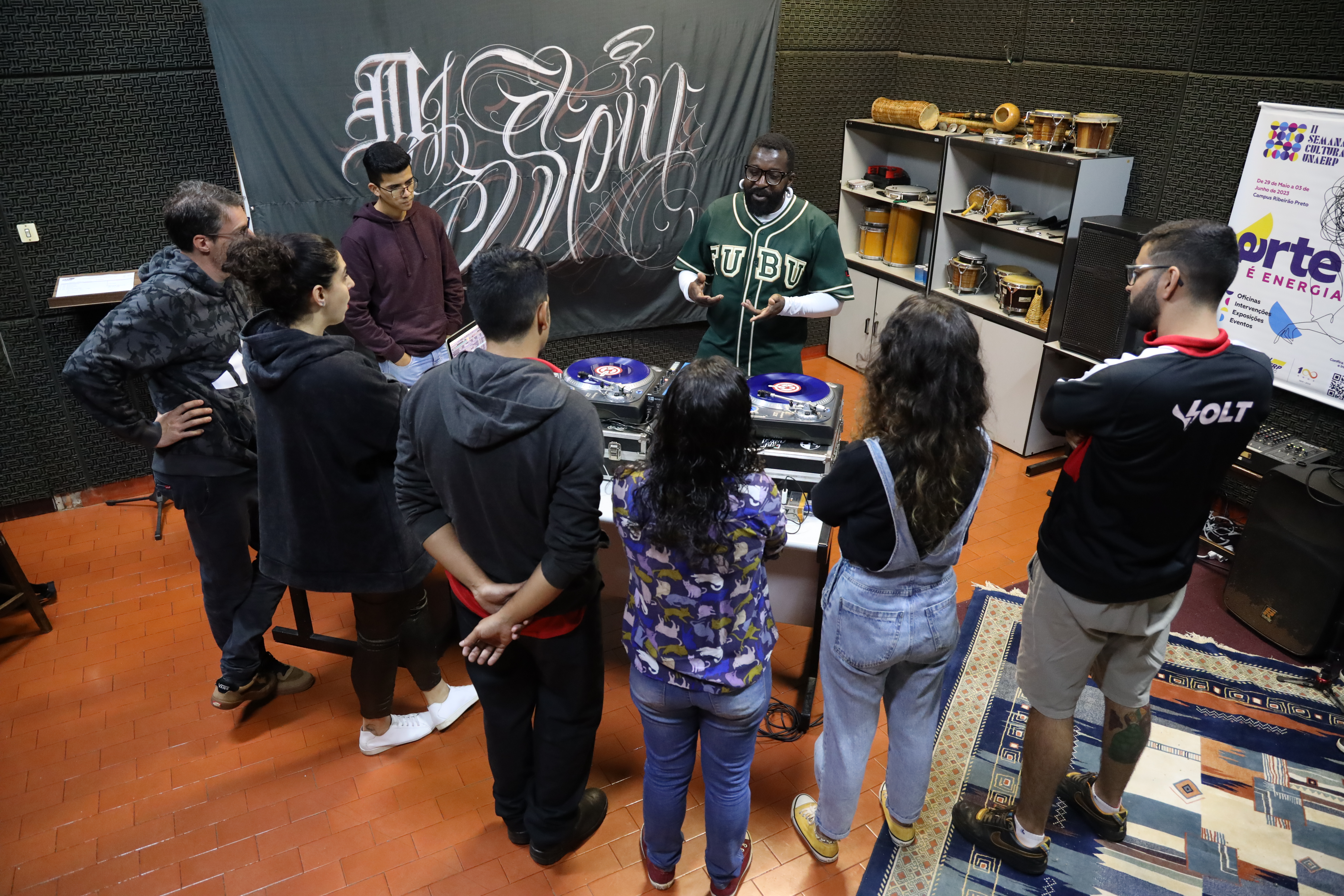 Outro destaque da programação da II Semana Cultural foi a oficina de discotecagem ministrada pelo DJ Spin, em que foram abordados conceitos técnicos e as diferentes vertentes relacionadas à black music, além do rap. O músico conta que os alunos participantes tiveram a oportunidade de colocar o aprendizado em prática e realizar a mixagem de, pelo menos, duas músicas. “O nome já diz, Universidade, tem pessoas de diversas cidades aqui, do Brasil inteiro, e é importante trazer essa informação da música, do toca disco, porque muita gente não ainda conhece, acha que é algo novo. Essa representatividade musical e esse diálogo são muito importantes”, afirma Spin.