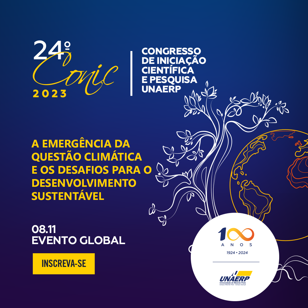 A Unaerp realiza, no dia 8 de novembro, a partir das 9h (UTC-3:00), a 24ª edição do CONIC – Congresso de Iniciação Científica e Pesquisa. Com o tema central “