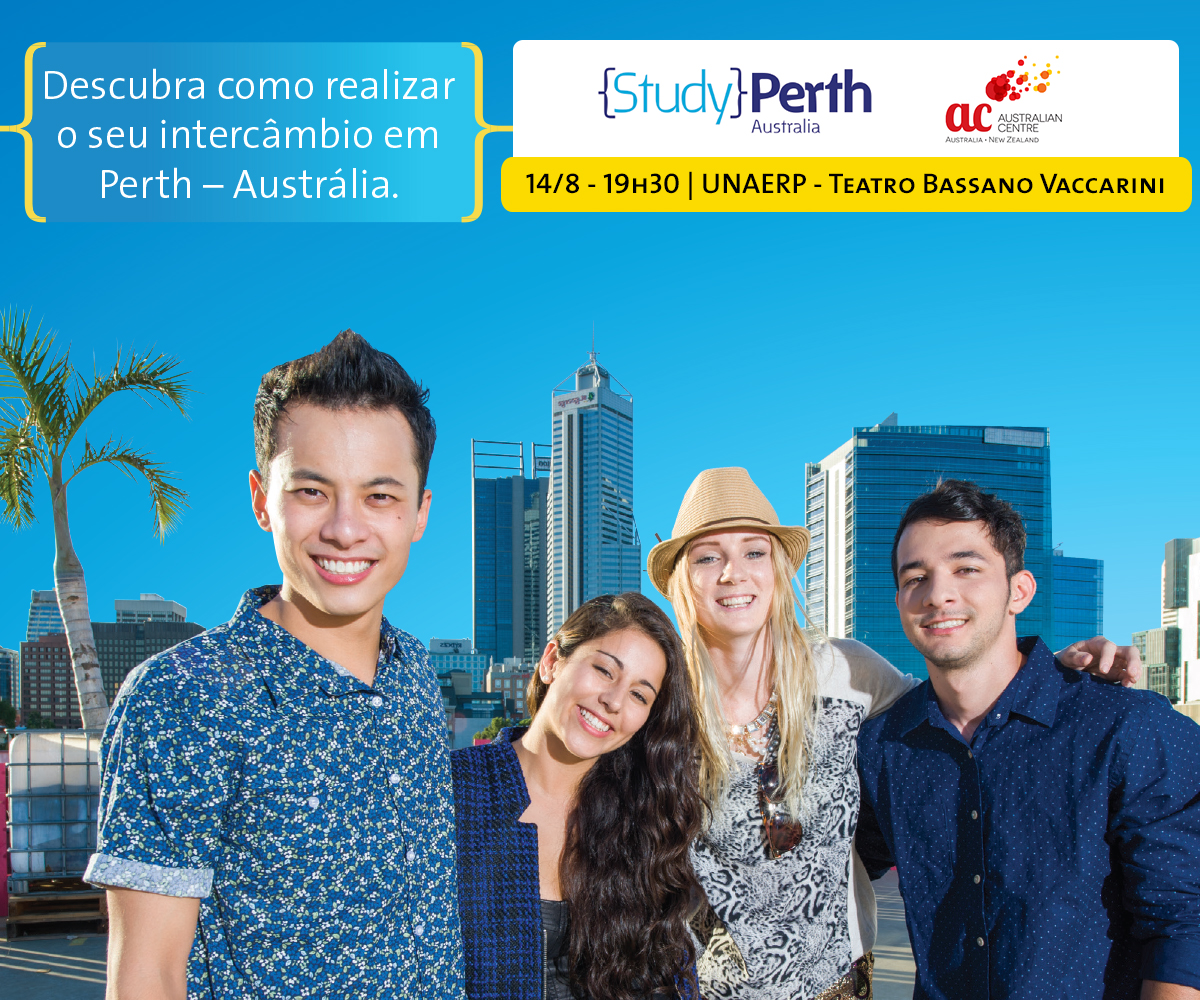 No dia 14 de agosto, a AC Australian Centre e o Study Perth, órgão do governo australiano, realizam uma palestra sobre programas de intercâmbio em Perth – Austrália, às 19h30, no Teatro Bassano Vaccarini, no Campus Ribeirão da Unaerp.