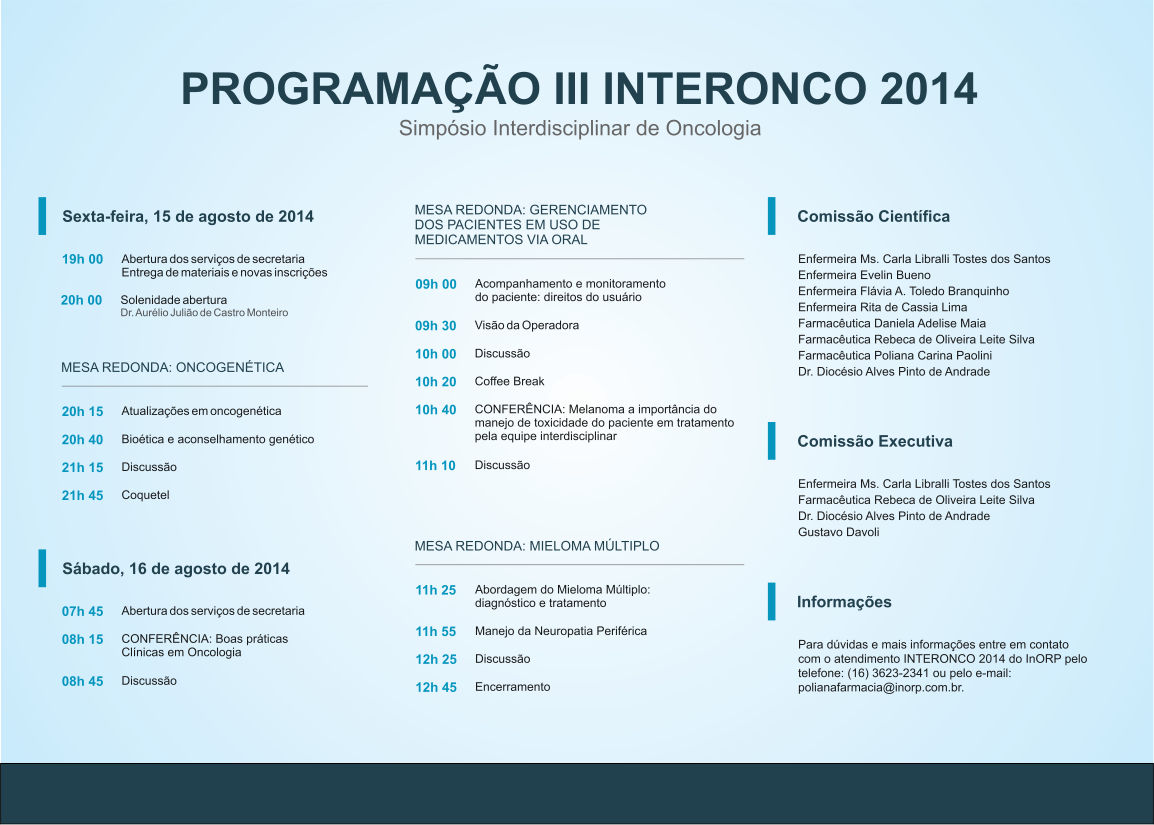 Nos próximos dias 15 e 16 de agosto a Unaerp recebe o InterOnco 2014 – 3° Simpósio Interdisciplinar de Oncologia, realizado pelo Instituto Oncológico de Ribeirão Preto – InORP.