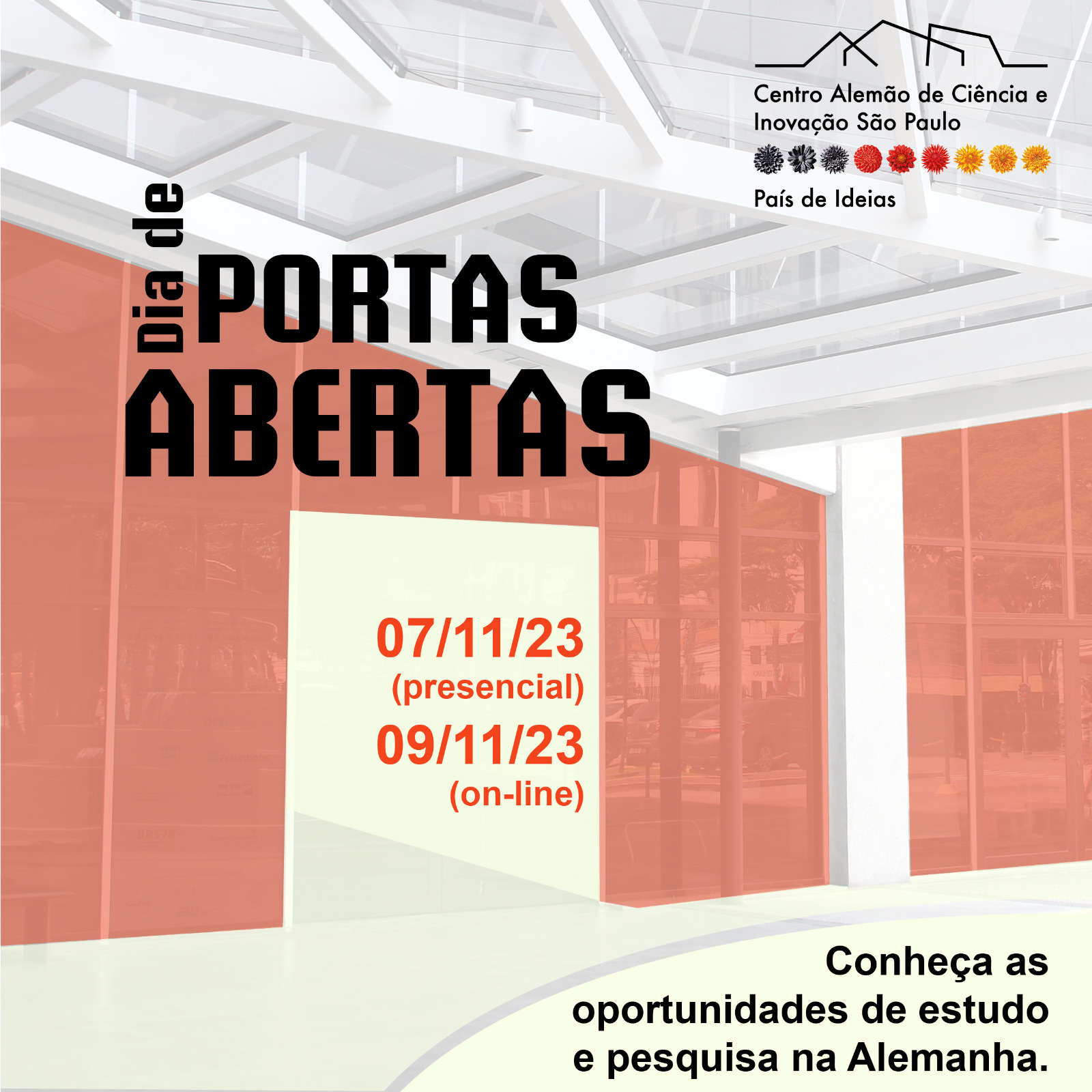 O Centro Alemão de Ciência e Inovação (DWIH), de São Paulo, promove, nos dias 7 e 9 de novembro, o Dia de Portas Abertas 2023. Gratuito e aberto ao público, o evento busca informar possibilidades e oportunidades de estudo e pesquisa na Alemanha.