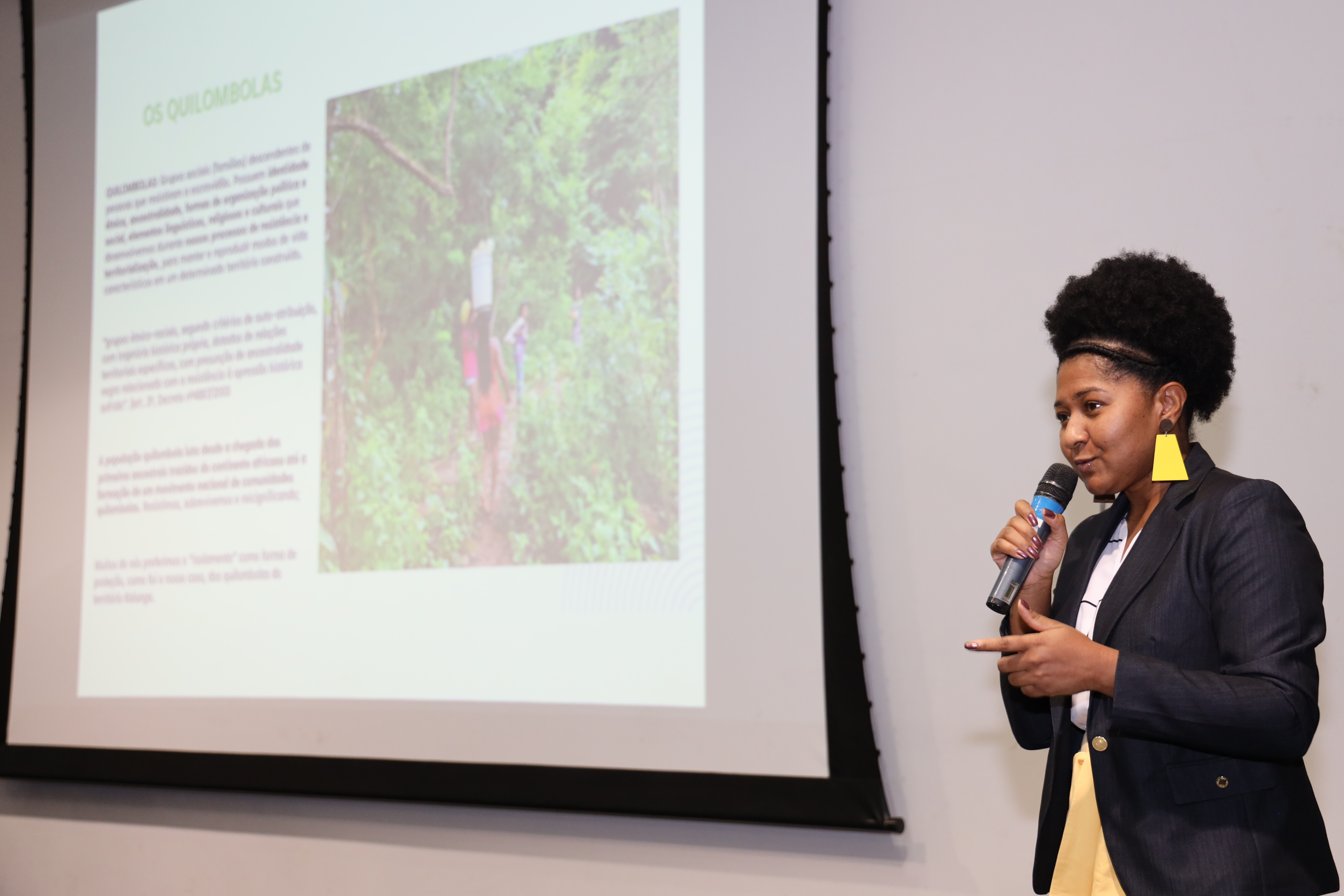 Segundo a palestrante, a questão das comunidades quilombolas veio bastante à tona durante esses últimos anos com relação à industrialização. “Essa questão da violência e a questão da ausência de política pública que atenda às necessidades dessas comunidades, que estão, na maioria, na zona rural e em locais de difícil acesso. Então, é importante abordar um pouco sobre quem são, como são, como funcionam, quais são as políticas, quais são as reivindicações, porque a academia tem um papel muito importante na construção”.