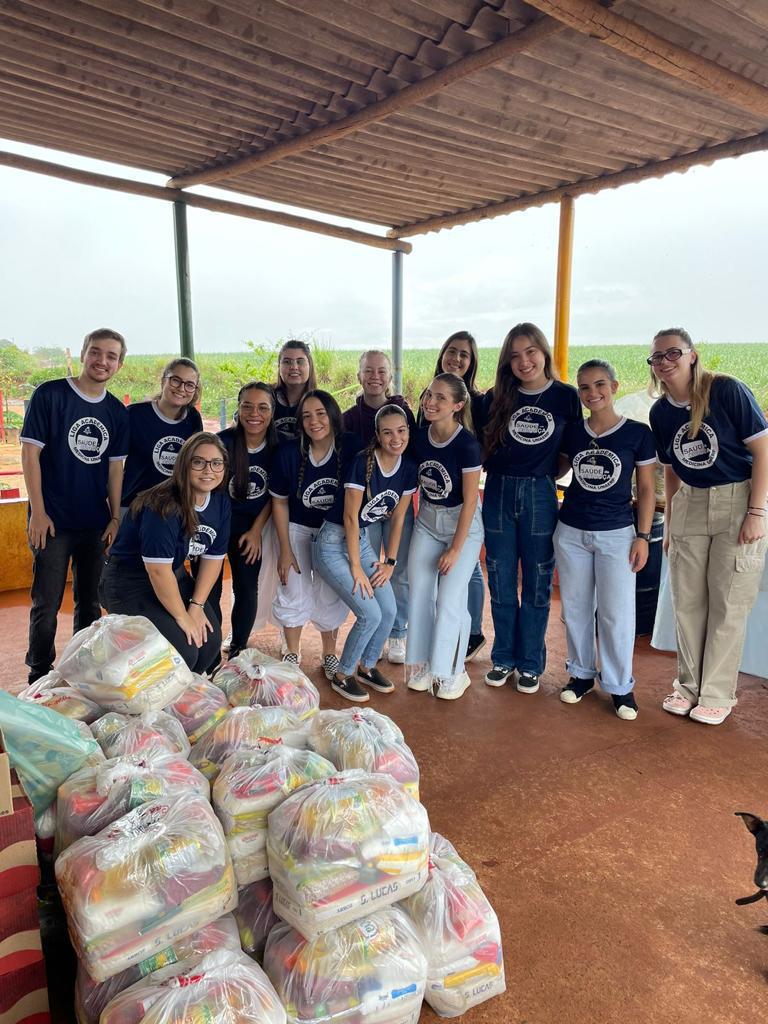 Os alunos da Liga de Pediatria, do curso de Medicina da Unaerp, realizaram uma campanha de arrecadação de alimentos para a Comunidade Anhanguera, localizada no bairro Recreio Anhanguera, em Ribeirão Preto. A entrega das doações de cestas básicas, que beneficiou 32 famílias, aconteceu no dia 28 de outubro.