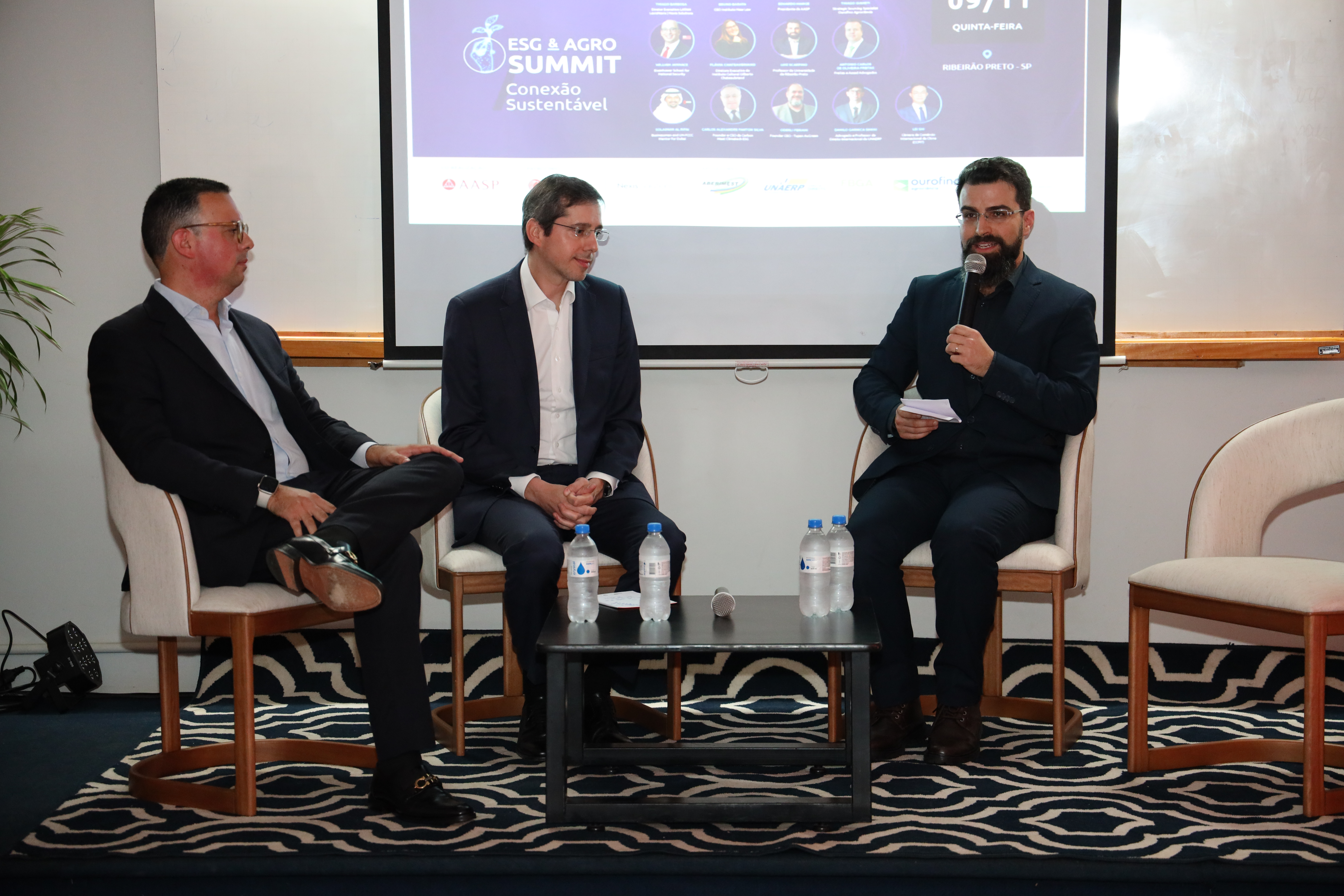 O curso de Direito da Unaerp sediou, no dia 9 de novembro, o evento "ESG e Agro Summit" promovido pela Associação dos Advogados de São Paulo (AASP) e Instituto New Law. A abertura foi realizada pelo professor Luiz Eugênio Scarpino Júnior, do curso de Direito, Bruno Barata, do Instituto New Law, e Eduardo Foz Mange, da AASP.