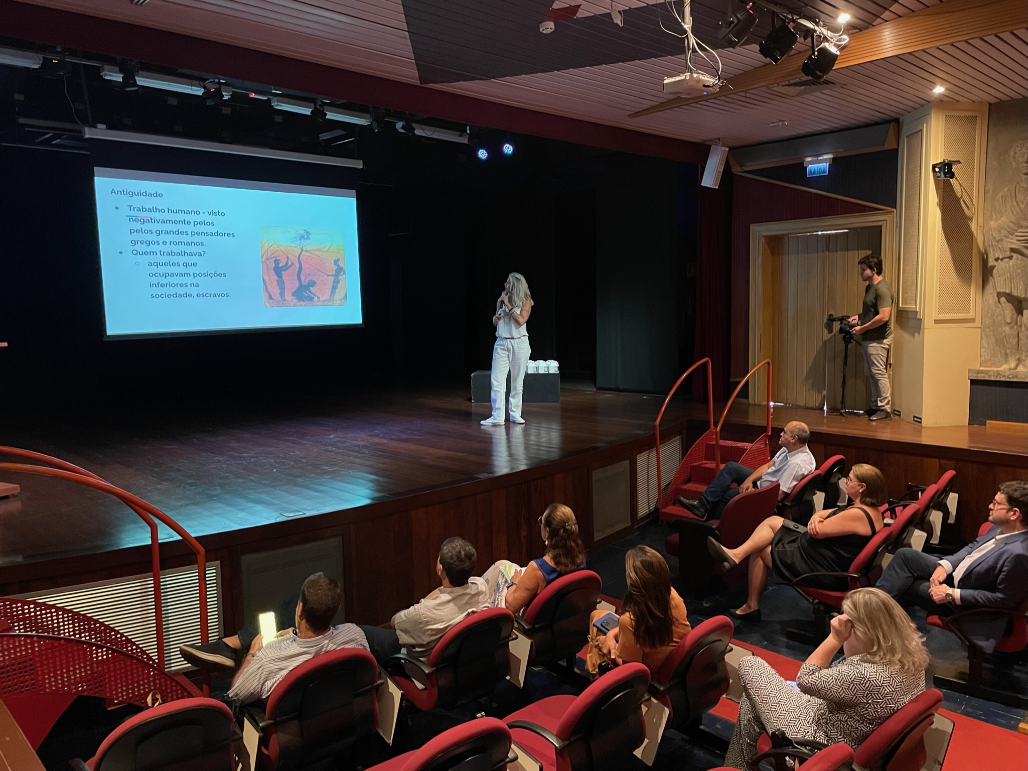 Professora Juliana Vendruscolo discutiu as origens do trabalho e sua influência na sociedade durante a abertura da Semana
