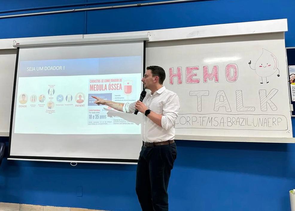 Nos dias 1 e 2 de março, a IFMSA Brazil Unaerp, do curso de Medicina, promoveu, em parceria com o Hemocentro de Ribeirão Preto, o evento “Hemotalk: Ação e Conscientização”, uma campanha para o cadastro de doadores de medula óssea. A iniciativa contou com ações de capacitação, por meio das palestras “O que eu sei sobre leucemia?” e “A importância do transplante de medula na qualidade de vida do paciente”, e o cadastro de doadores.