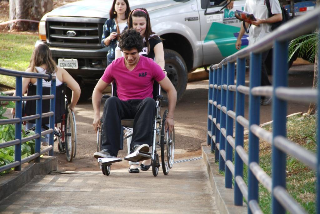 Na manhã da última segunda-feira (1º), alunos e professores do curso de Arquitetura e Urbanismo da Unaerp participaram de uma aula de vivência em acessibilidade, no Campus Ribeirão. Durante a atividade os estudantes vivenciaram situações pelas quais passam os deficientes físicos nos mais variados espaços e ambientes. Usando cadeiras de rodas, venda nos olhos, muletas e andadores, eles circularam pela Praça Central, Centro de Convivência, rampa e escada de acesso ao bloco B, para sentir as necessidades reais das pessoas especiais. Além disso, o cadeirante Renato Sakio, conversou com os alunos sobre os problemas que enfrenta diariamente.