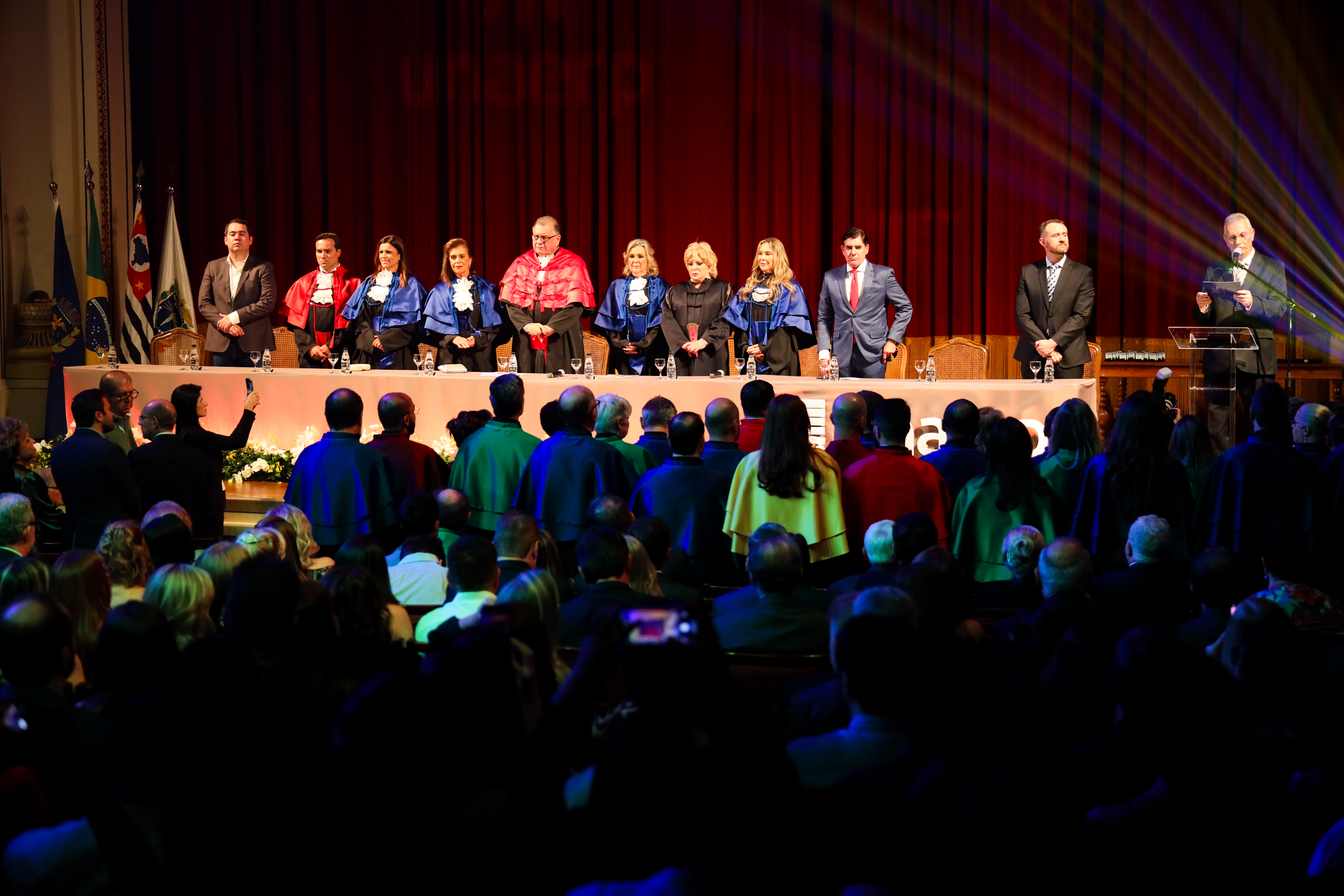 A solenidade comemorativa dos 100 anos da AERP/Unaerp, realizada no Theatro Pedro II, no dia 7 de junho, foi um encontro marcado por emoção e homenagens. O evento contou com a participação dos associados da AERP e comunidade acadêmica, além de autoridades de Ribeirão Preto. A programação festiva teve ainda celebração ecumênica no Cruzeiro da Universidade e cerimônia dos Correios.