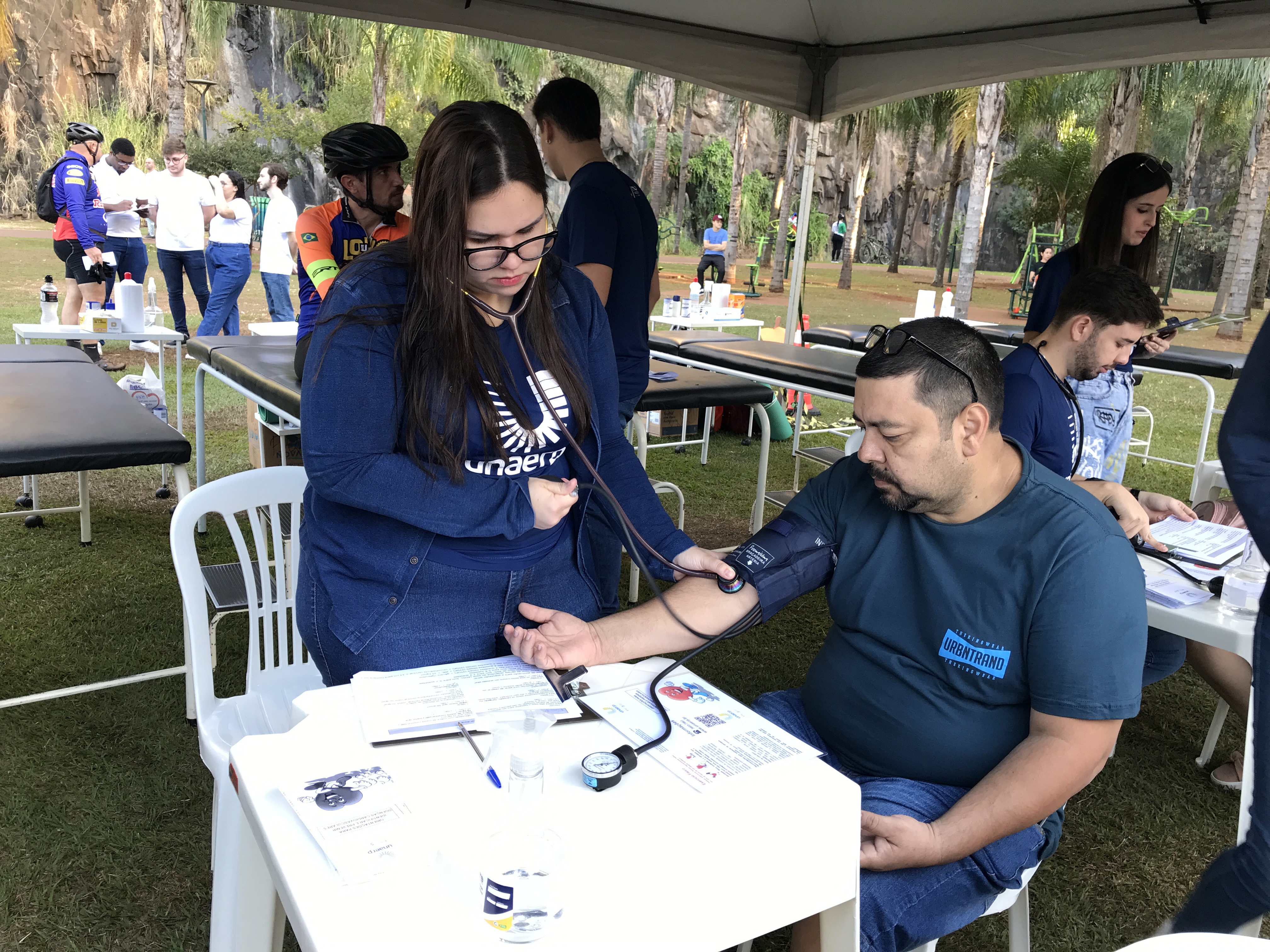 Atendimentos para a comunidade - Os atendimentos foram voltados para os ciclistas e o público que costuma frequentar o parque. O aposentado Ednardo Zanon, 70 anos, foi uma das pessoas atendidas no evento, passando pelas orientações do curso de Nutrição. “Achei o atendimento maravilhoso, os alunos aprendem na rua. Fiz o check-up na saúde e é algo muito importante porque aproxima a população, é uma iniciativa sempre muito bem-vinda”.