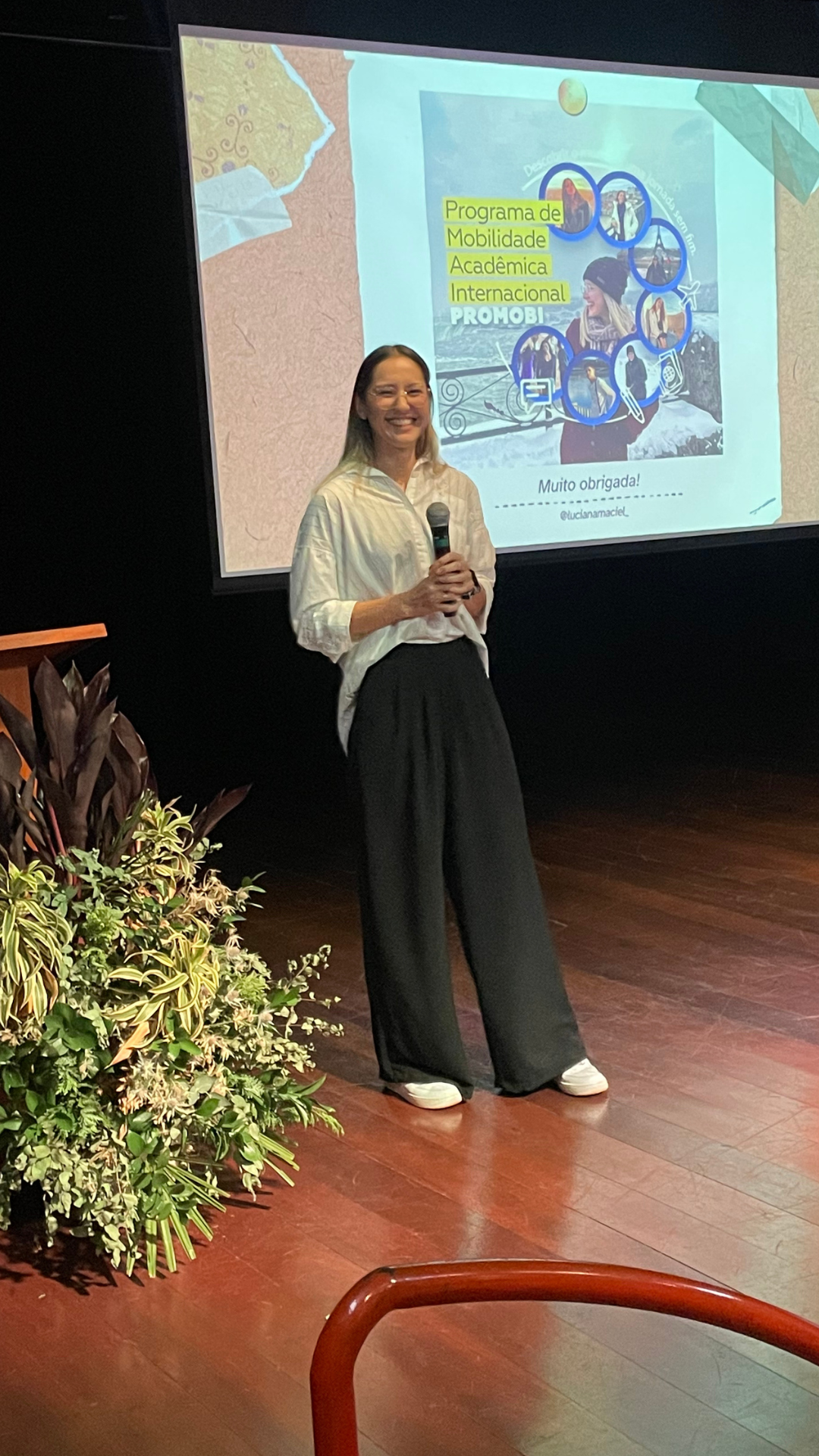 INTERCÂMBIO - Outro destaque da programação foi a palestra da aluna Luciana Maciel, que participou do Programa de Mobilidade Internacional - Promobi da Unaerp para intercâmbio junto à University of Guelph-Humber, no Canadá. A estudante compartilhou seu processo de preparação para o intercâmbio até os aprendizados que adquiriu durante a viagem.