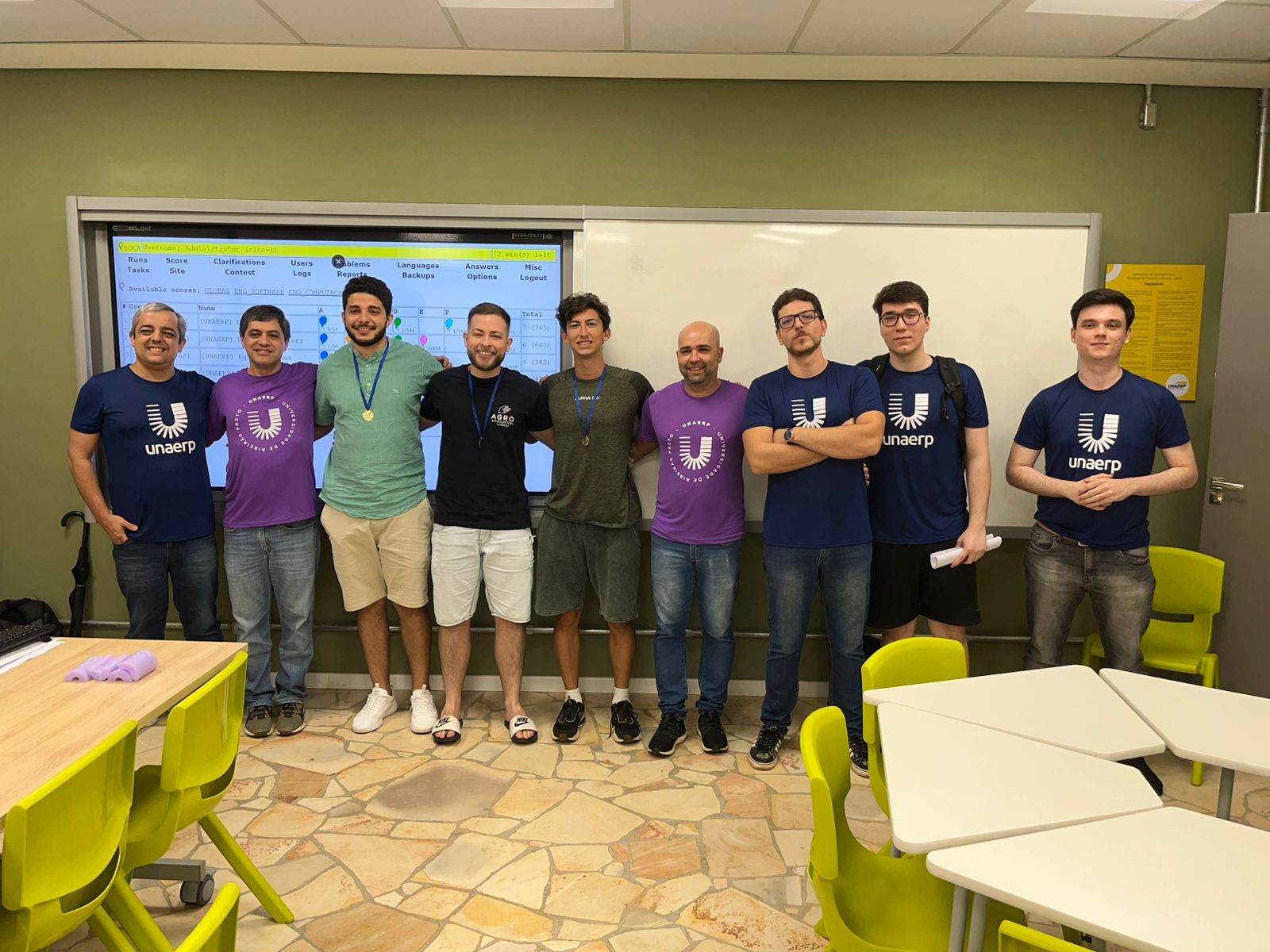 No dia 9 de novembro, o curso de Engenharia de Software promoveu a I Maratona de Programação da Unaerp, inspirada na Maratona de Programação da Sociedade Brasileira de Computação (SBC). Realizada nas salas do laboratório Liape, os alunos tiveram que resolver 8 problemas computacionais em equipes, utilizando a linguagem dos algoritmos.