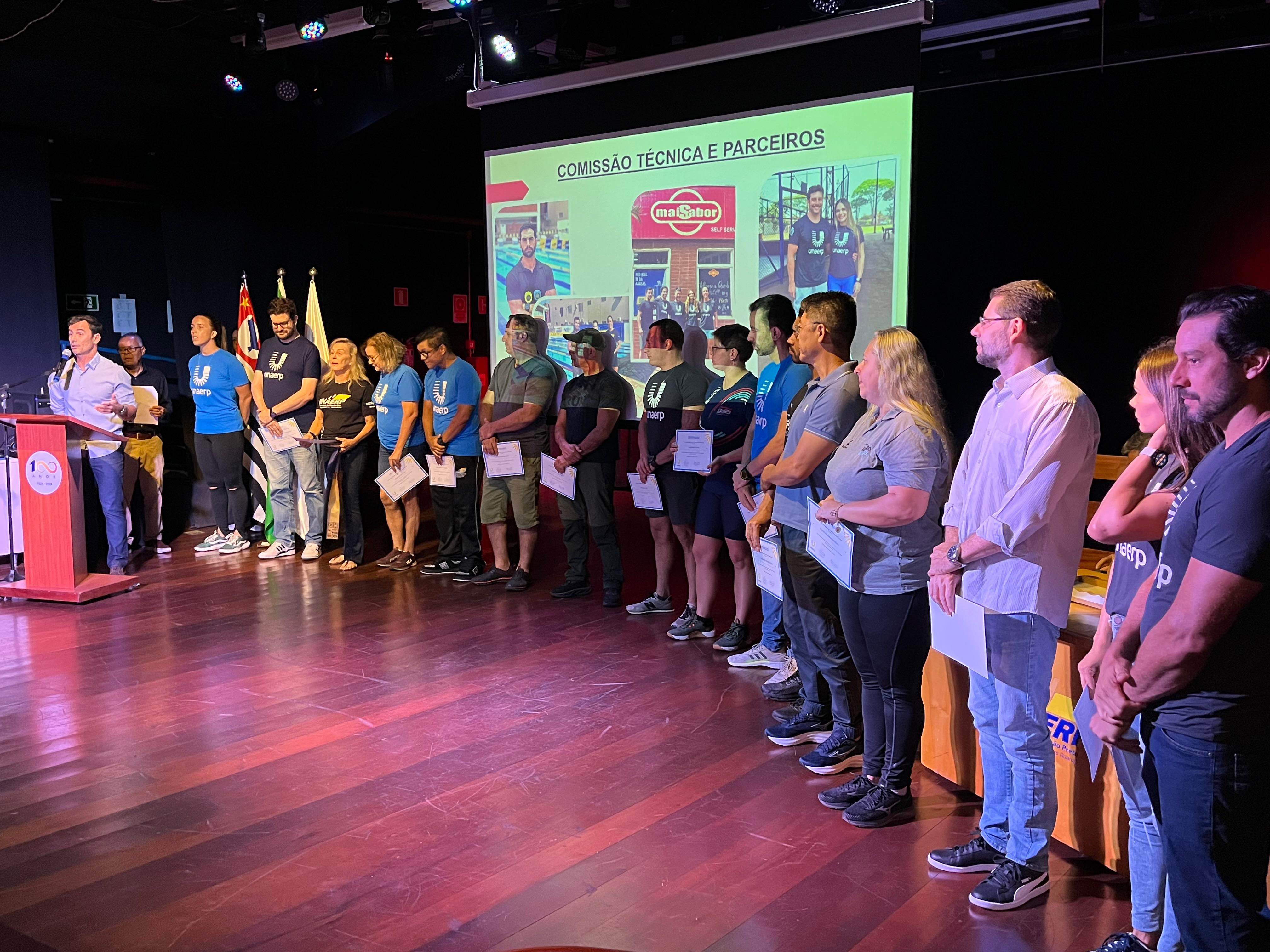 A programação contou ainda com uma cerimônia no Teatro Bassano Vaccarini, onde foi apresentado o trabalho desenvolvido com os atletas e empresas parceiras do projeto. Coordenador da equipe Unaerp/SME, o professor Arthur Rizzi, explica que o projeto é composto por três pilares: desenvolvimento pessoal, formação acadêmica e profissional. “O Troféu não é uma competição e sim uma celebração onde todos têm a possibilidade de nadar, desde os atletas menores até a equipe principal”.