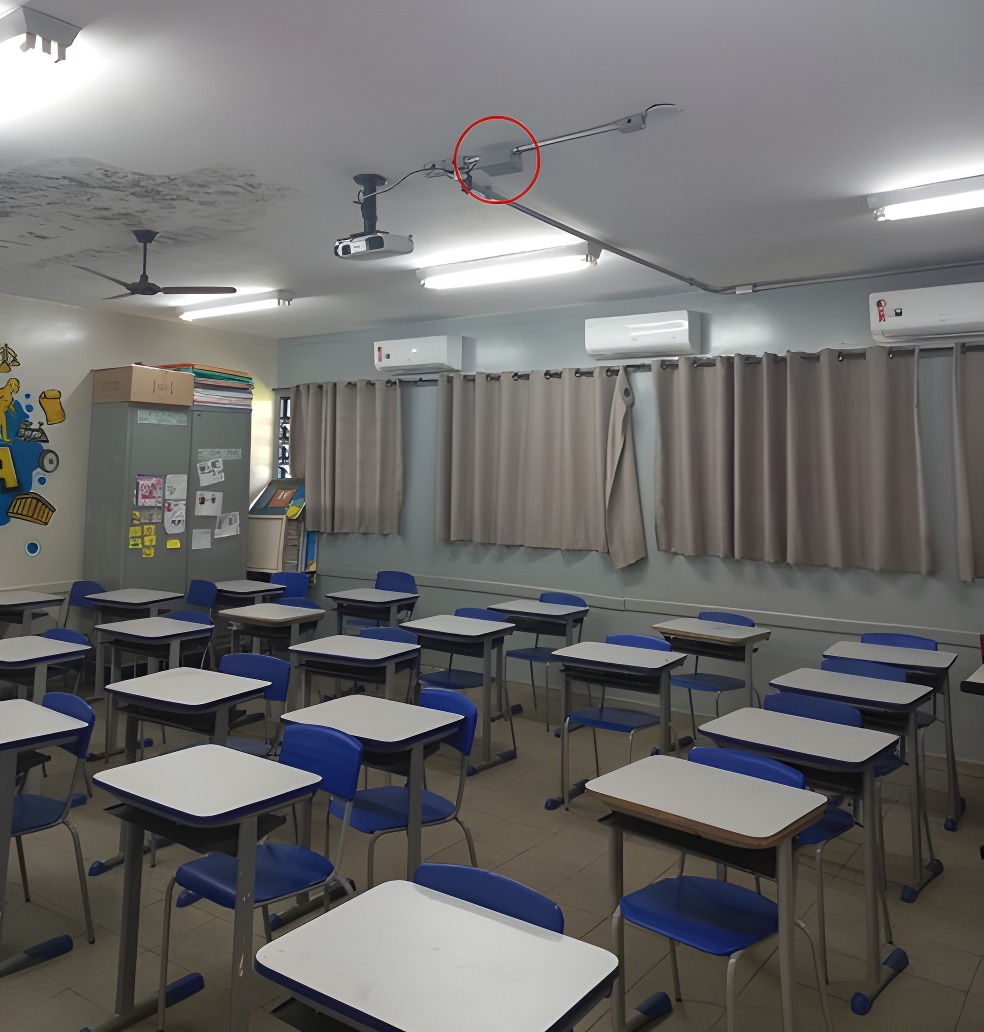 Sensor instalado no ambiente interno de uma sala de aula