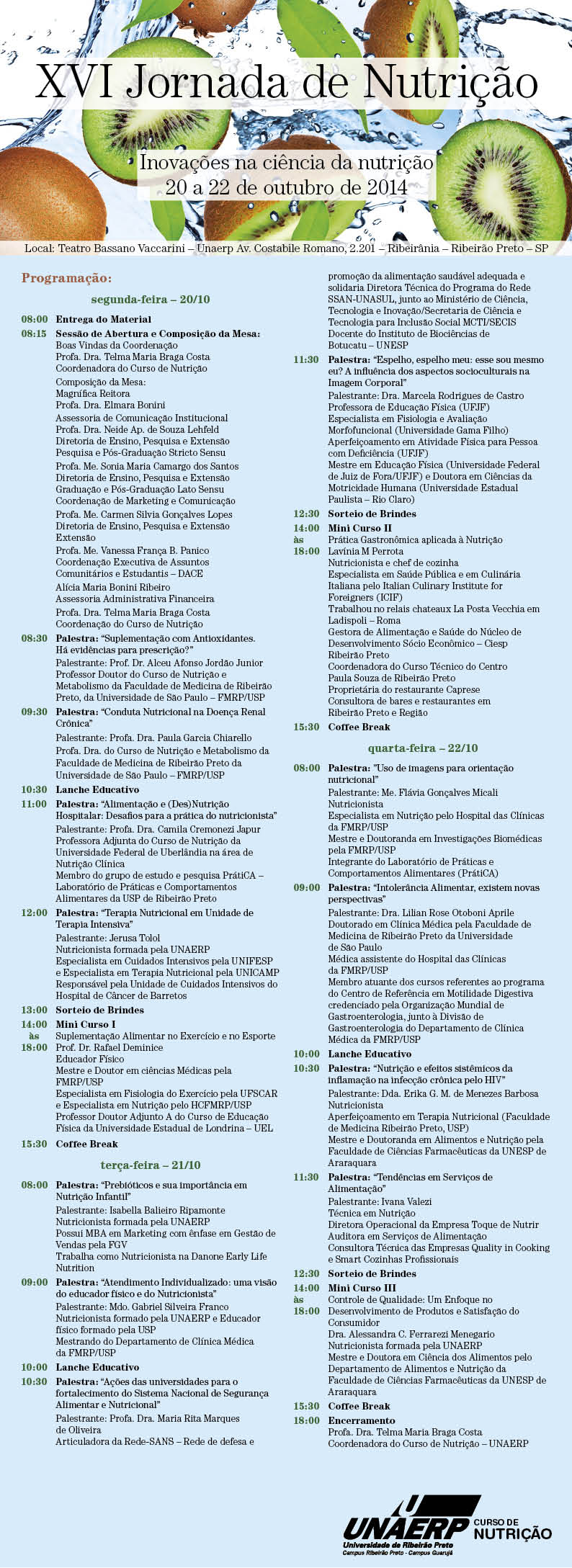De 20 a 22 de outubro acontece na Unaerp a XVI Jornada de Nutrição, no Teatro Bassano Vaccarini.