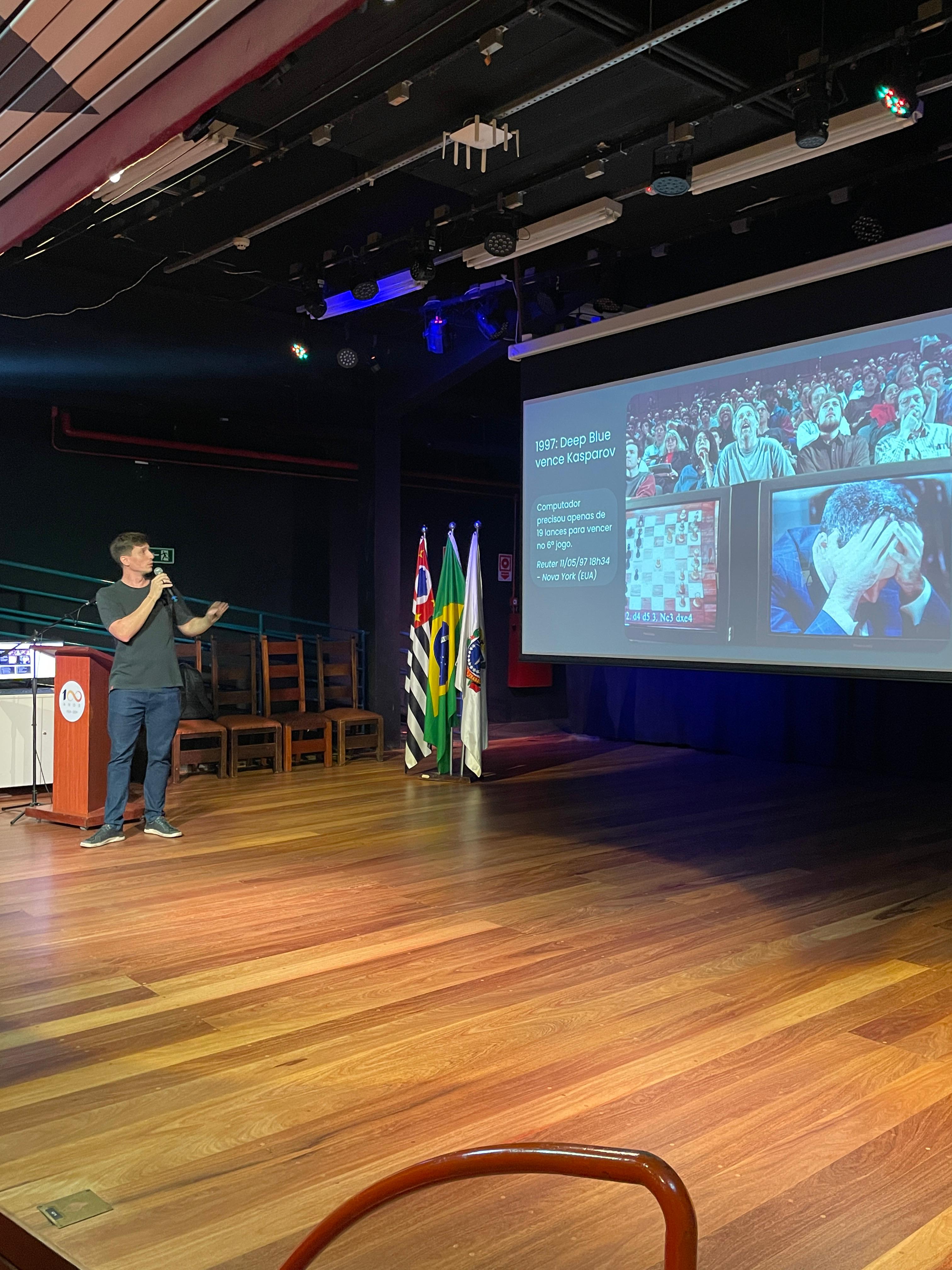 Na programação estiveram palestras como a ministrada pelo professor Paulo Mazzoncini, da Faculdade de Medicina da USP de Ribeirão Preto, que abordou o uso da IA na área da saúde. Para o docente, eventos como esse são importantes para ampliar o conhecimento dos alunos. “É uma forma de despertar interesse e alinhar expectativas com o mercado”.